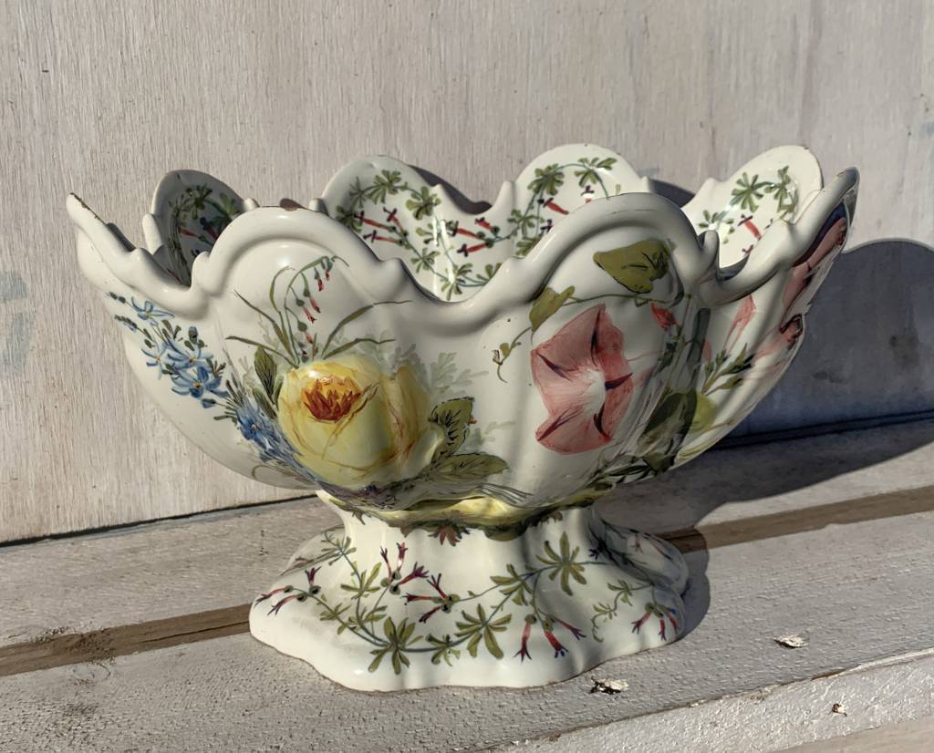 Coppa centrotavola in maiolica policroma. Bassano, XIX secolo. 29 x 22 x h 17 cm. Manifattura Antonibon di primo Ottocento. Realizzata interamente in maiolica dipinta, con decorazioni di stile Luigi XV a motivi floreali. Marchiate sotto alla base. - Tutte le spedizioni in UE sono gratuite ed...