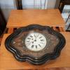 Orologio in legno ebanizzato e quadrante con inserti in madreperlali e metalli vari.