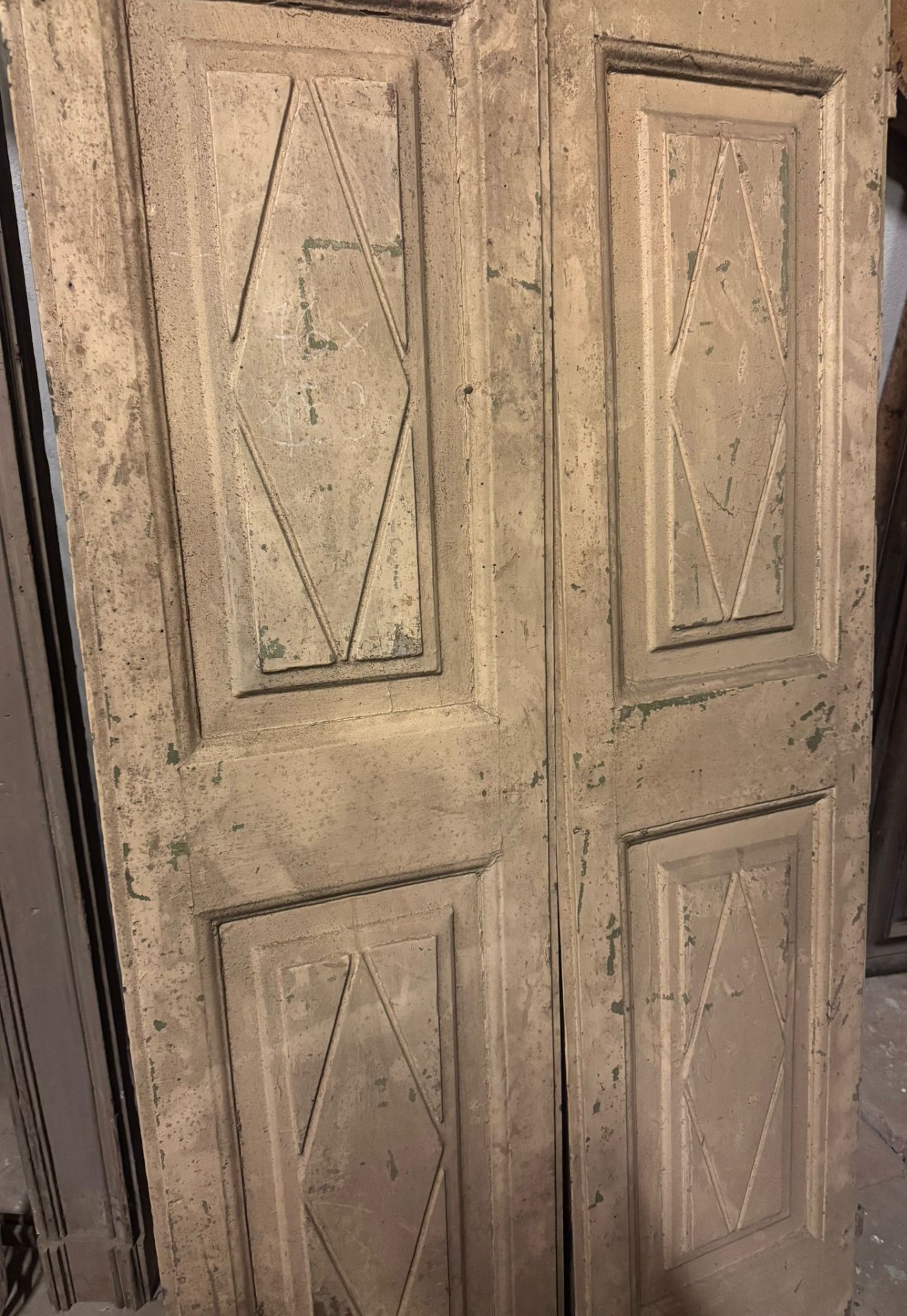 PAN430 - Coppia di ante laccate, con losanghe, epoca '700, misure cm L 76 x H 159