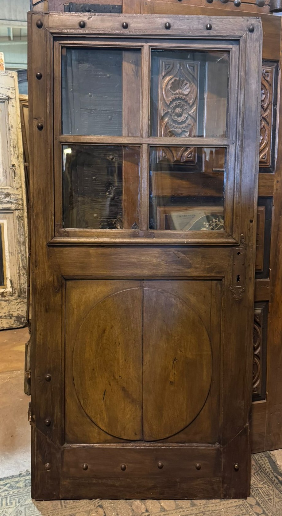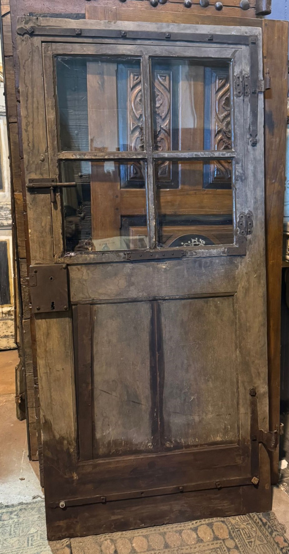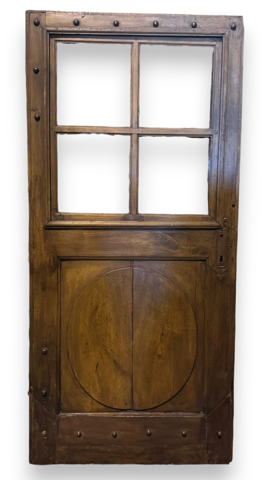 PTI768 - Porta ad un battente a vetri, in legno di noce, chiodata.
