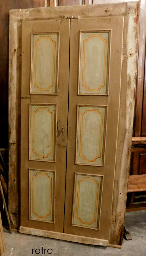 PTS621 - N. 3 porte a due battenti in legno laccato, complete di telaio, epoca '700, luce cm L 87 x H 202