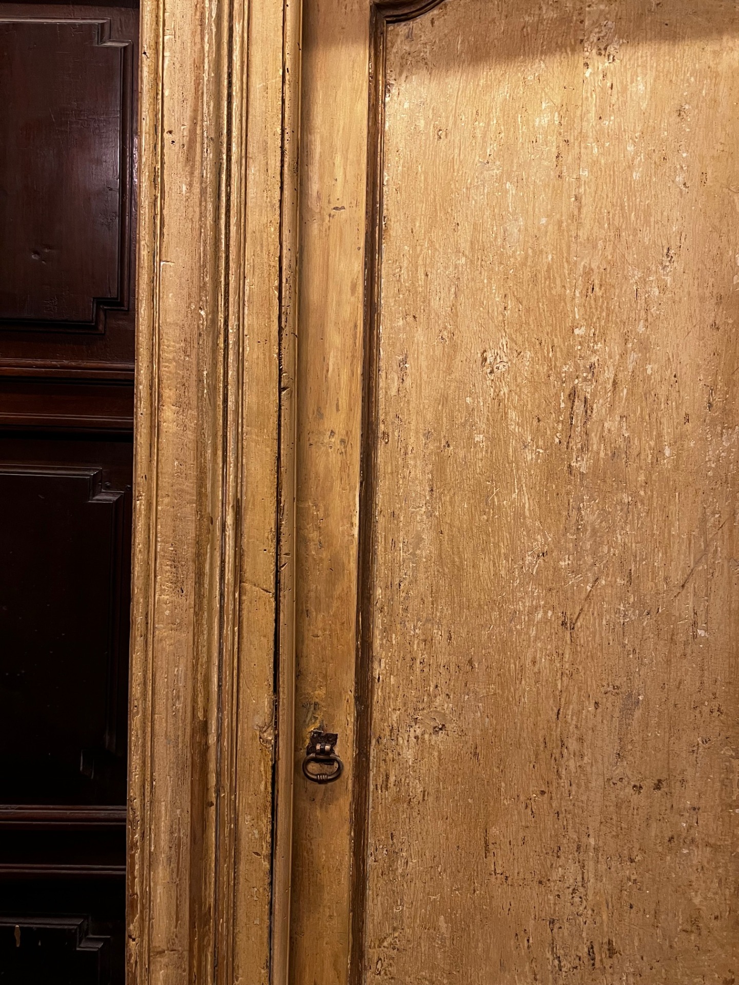 PTS898 - N. 2 porte antiche laccate. Un battente, complete di telaio e sovrapporta mancante.