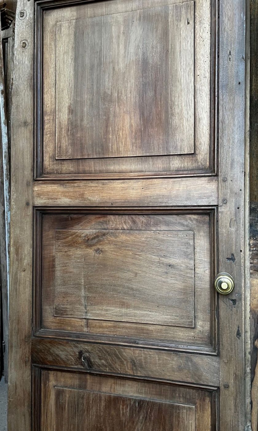 PTS903 - N. 4 porte in legno di noce, un battente con pannelli intagliati.
