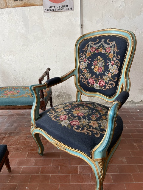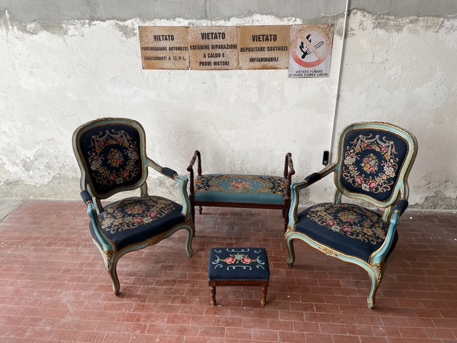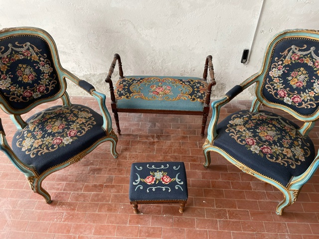 Salottino con 2 poltrone, panchetta e pouf in stile Luigi XV