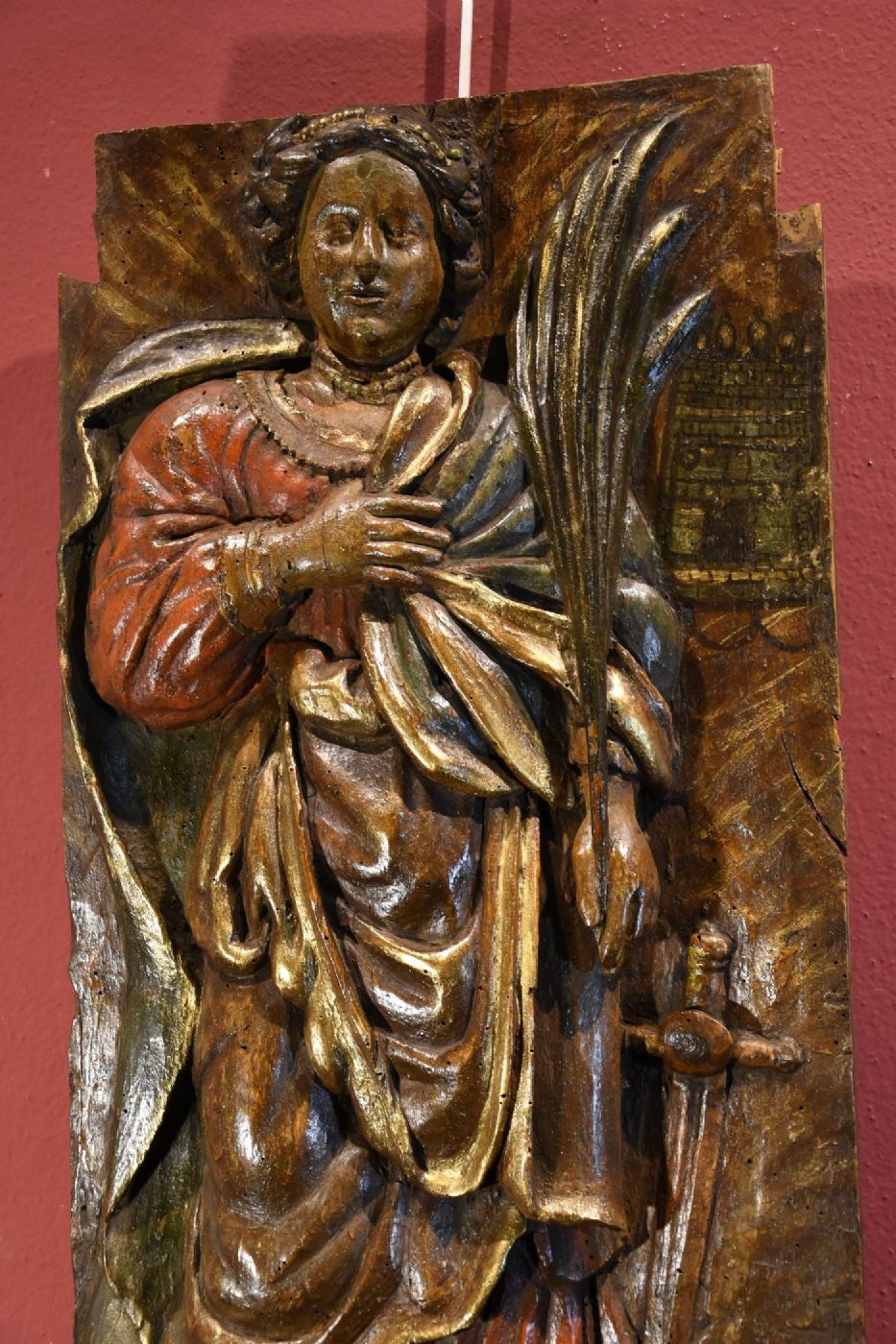 Altorilievo ligneo ‘Santa Barbara’, Francia XVI/XVII secolo