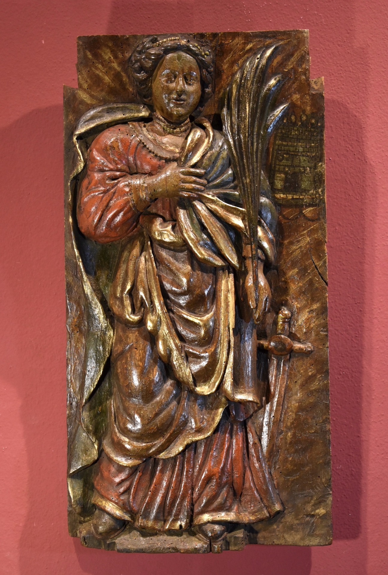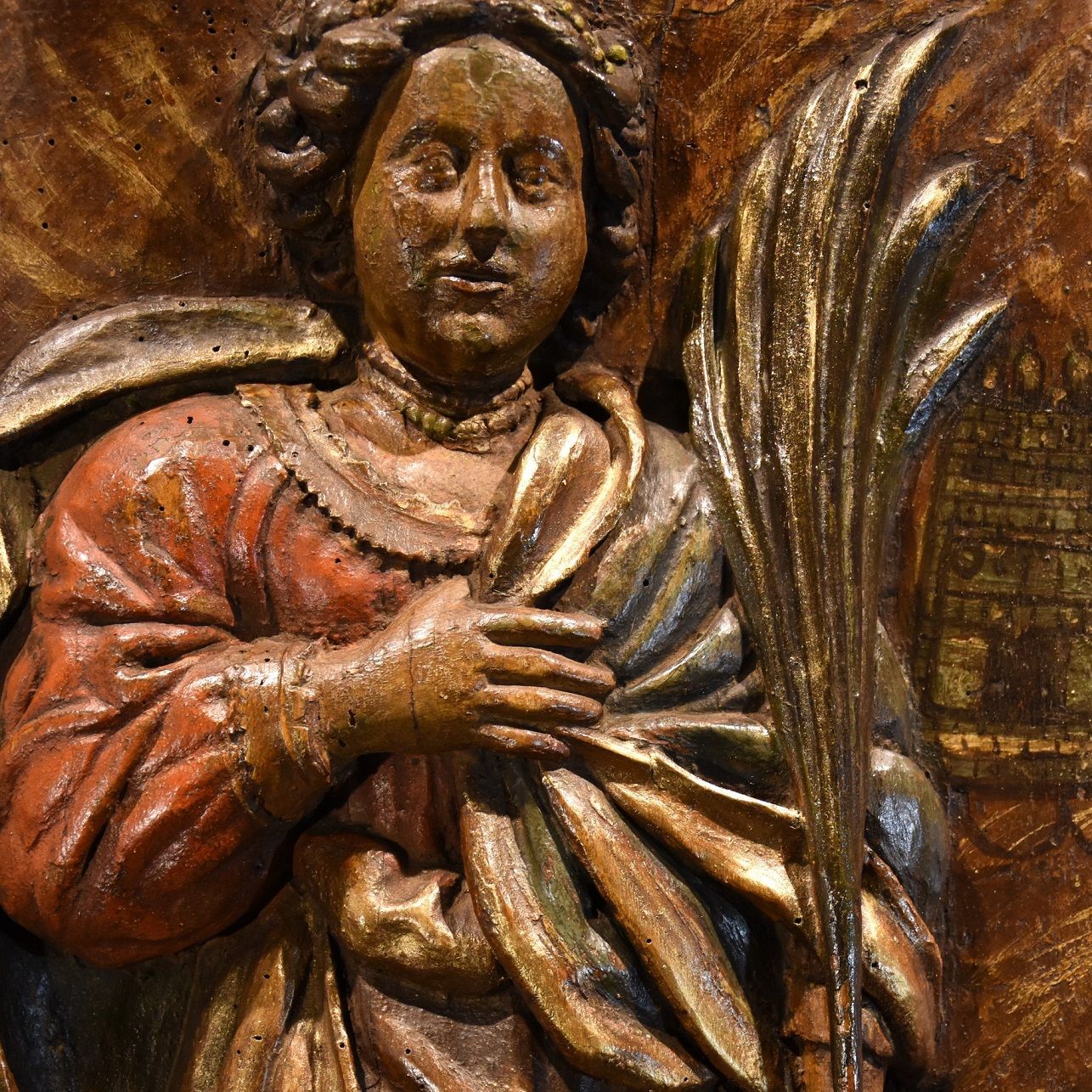 Pannello ad altorilievo raffigurante ‘Santa Barbara’Sud della Francia, XVI/XVII secolo