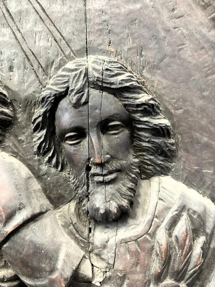 Coppia di tondi in bassorilievo ligneo con scene sacre, Toscana, XVII secolo