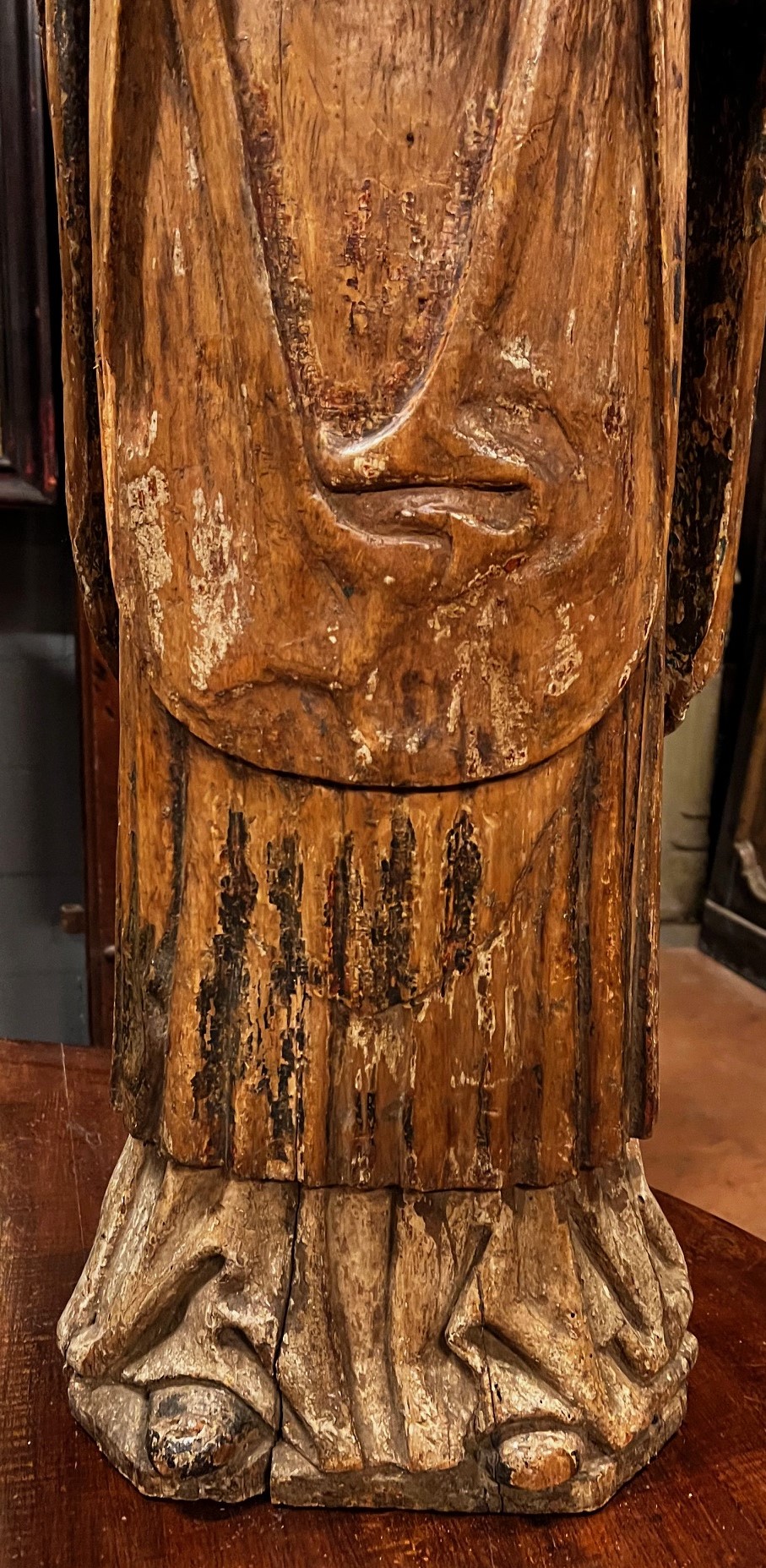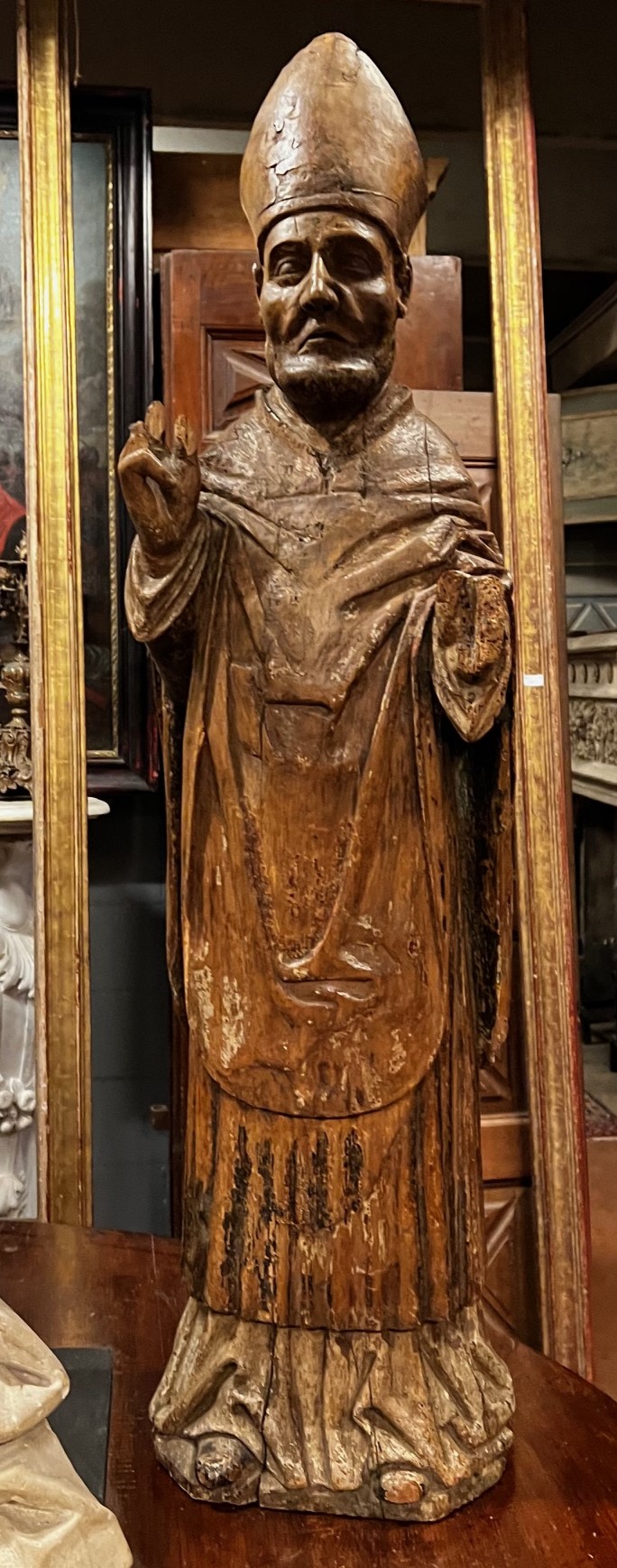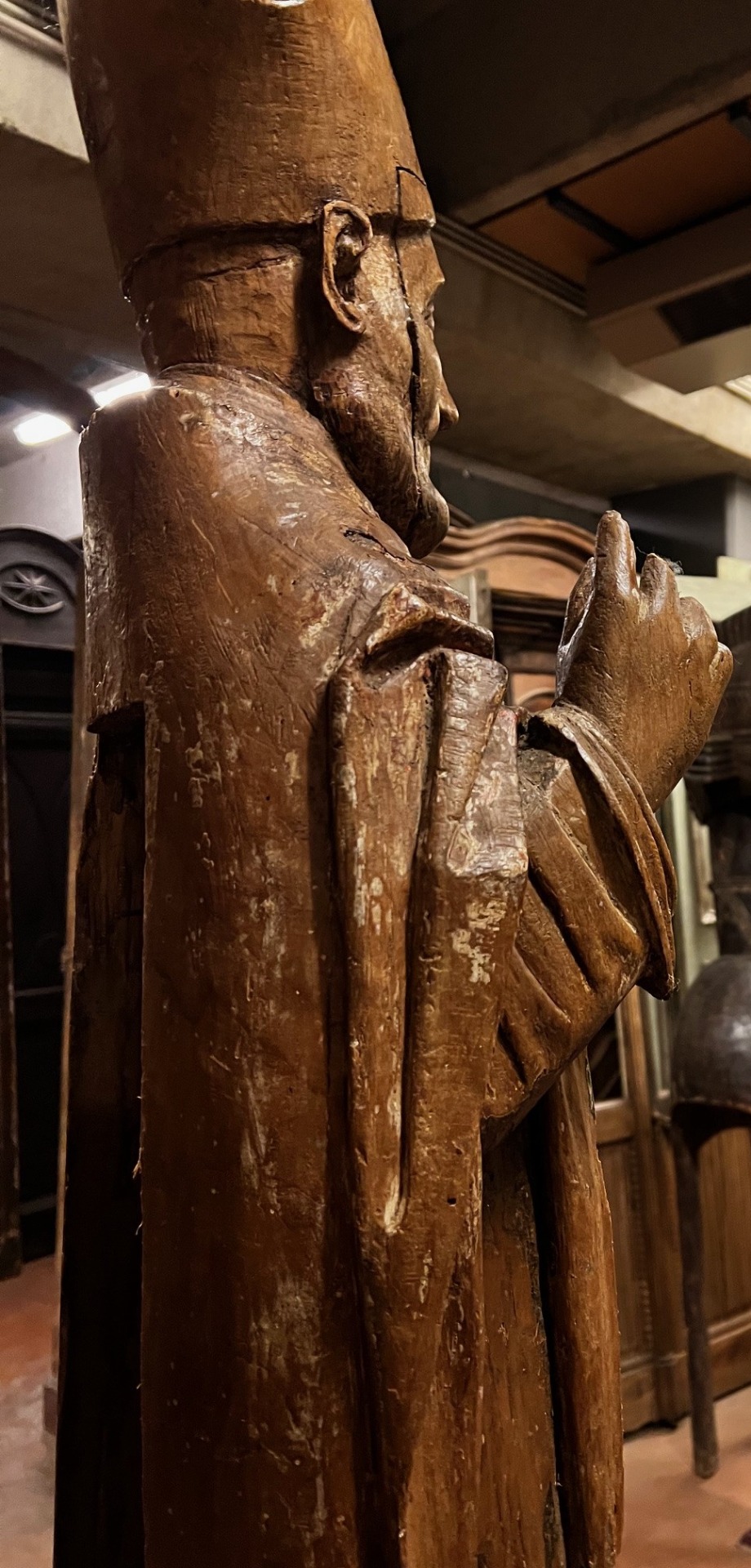 DARS690 - Scultura in legno intagliato rappresentante San Ambrogio. Misure cm L 36 x H 135 x P 35