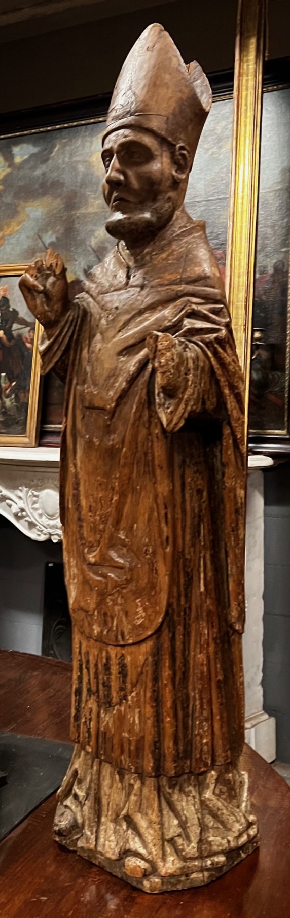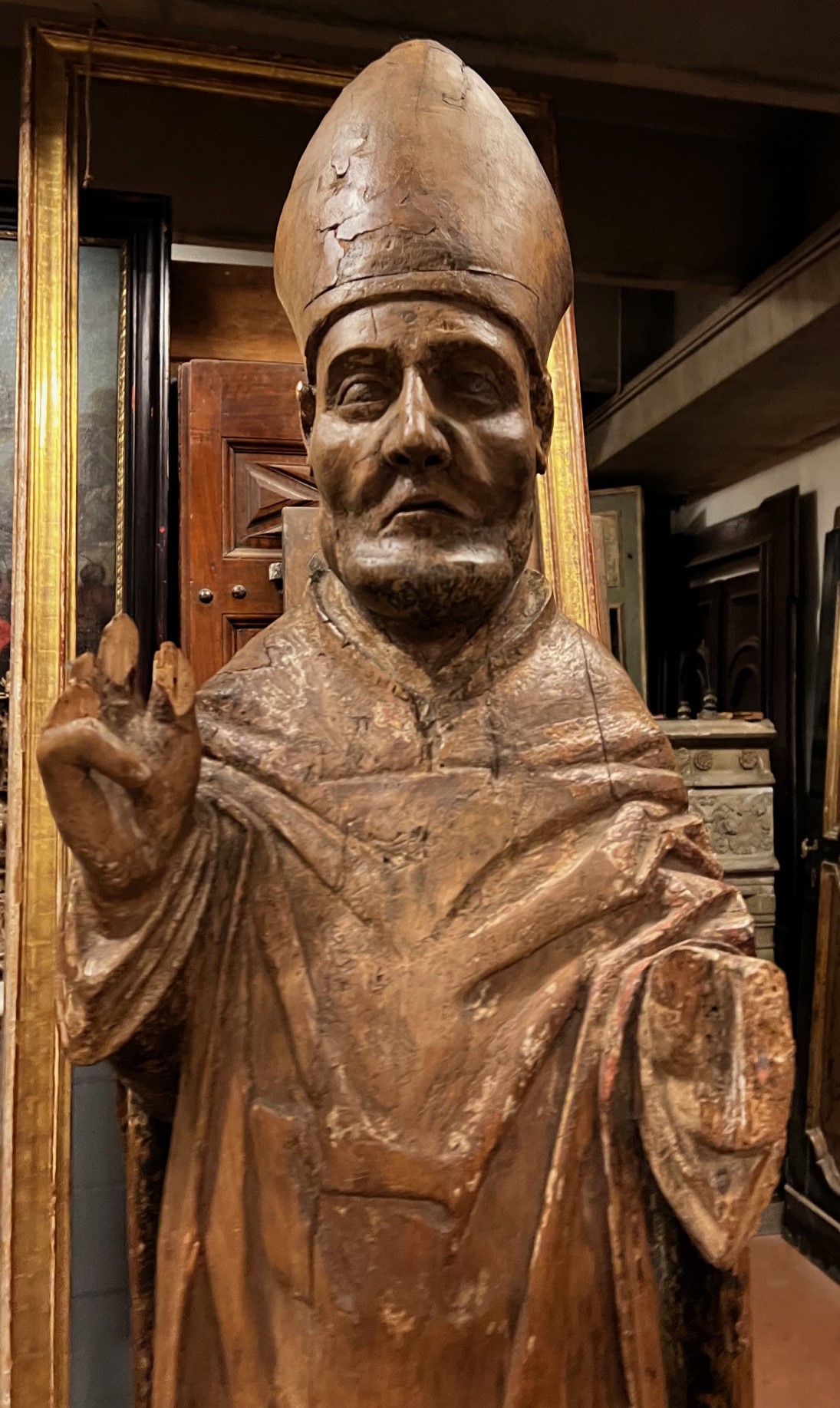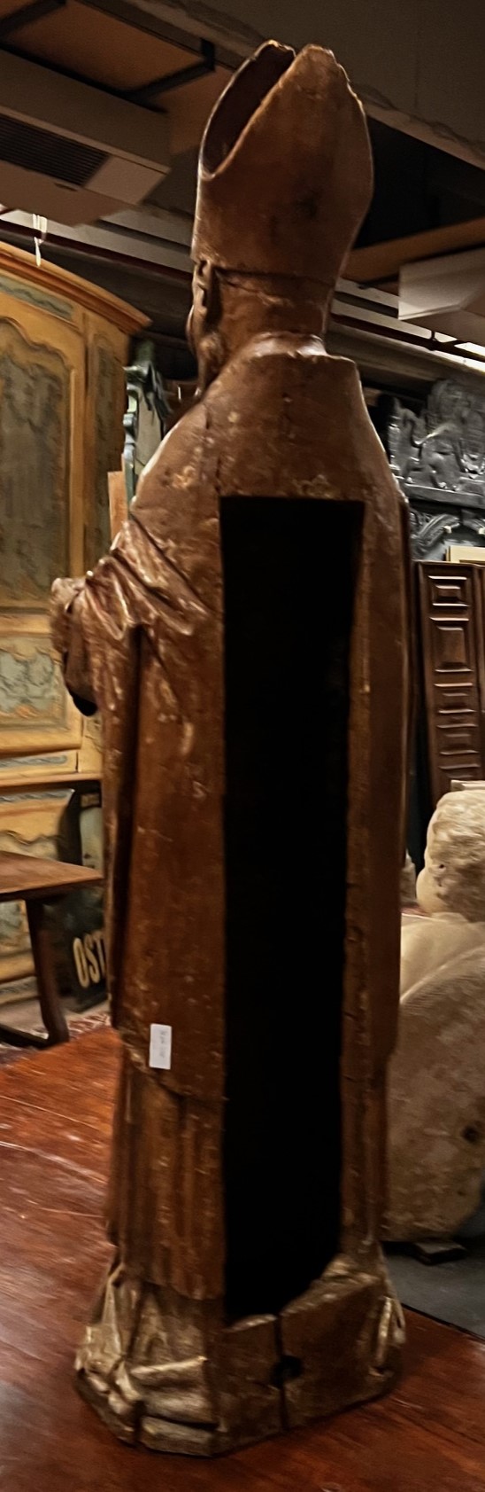 DARS690 - Scultura in legno intagliato rappresentante San Ambrogio. Misure cm L 36 x H 135 x P 35