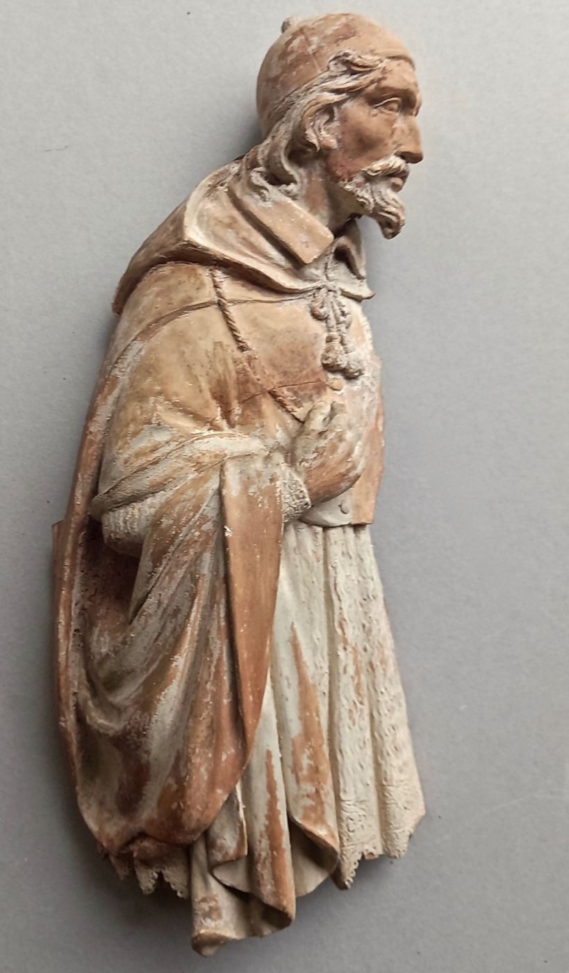 Altorilievo in terracotta rappresentante il Card.Federico Borromeo, cugino e successore di San Carlo come Arcivescovo di Milano dal 1595 al 1633, noto anche come “Cardinal Federigo” per il ruolo assegnatogli da Alessandro Manzoni nei Promessi Sposi.