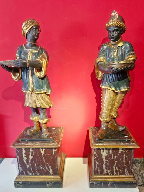 Coppia di Sculture di servitori mori nella Venezia del XVIII secolo