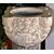 Scolpito con agli angoli quattro mascheroni; sul davanti stemma nobiliare sovrastato da elmo con ampio cimiero di piume svolazzanti.
