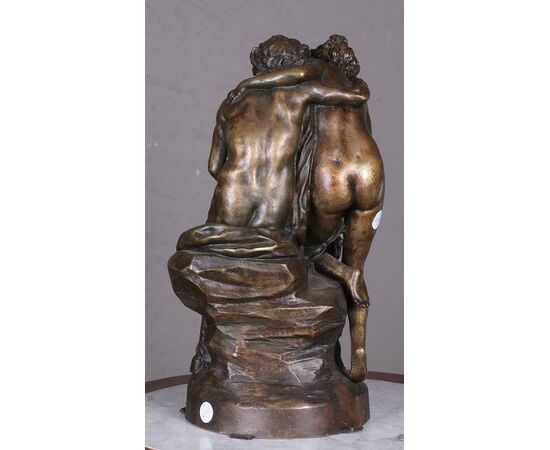 Scultura in bronzo firmata Claude Michel Clodion (1738-1814). Rappresentata una scena di furiosa passione tra Amore e il Fauno. Scultore principalmente noto per i suoi gruppi mitologici di danzatrici, ninfe e bagnanti.