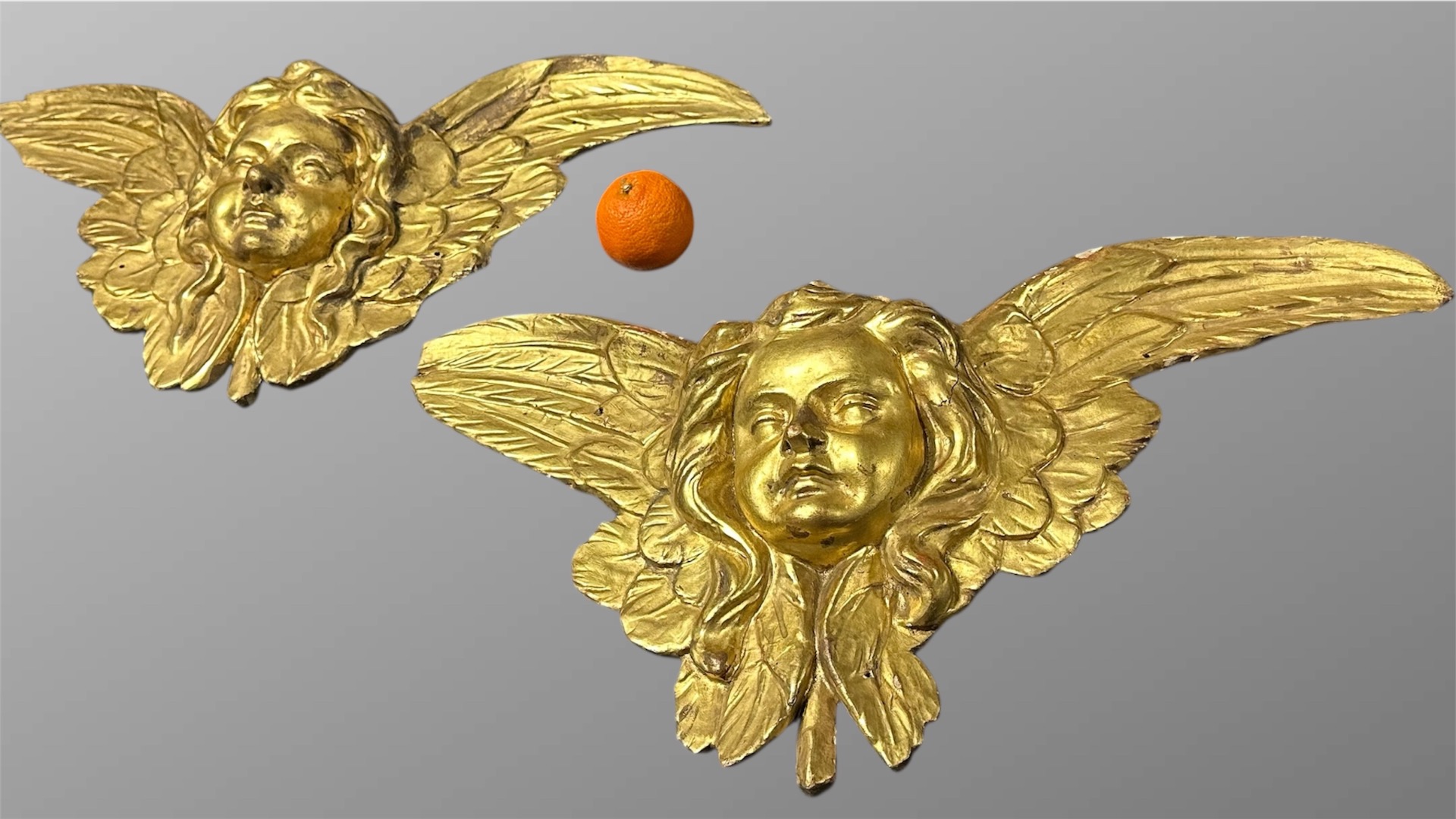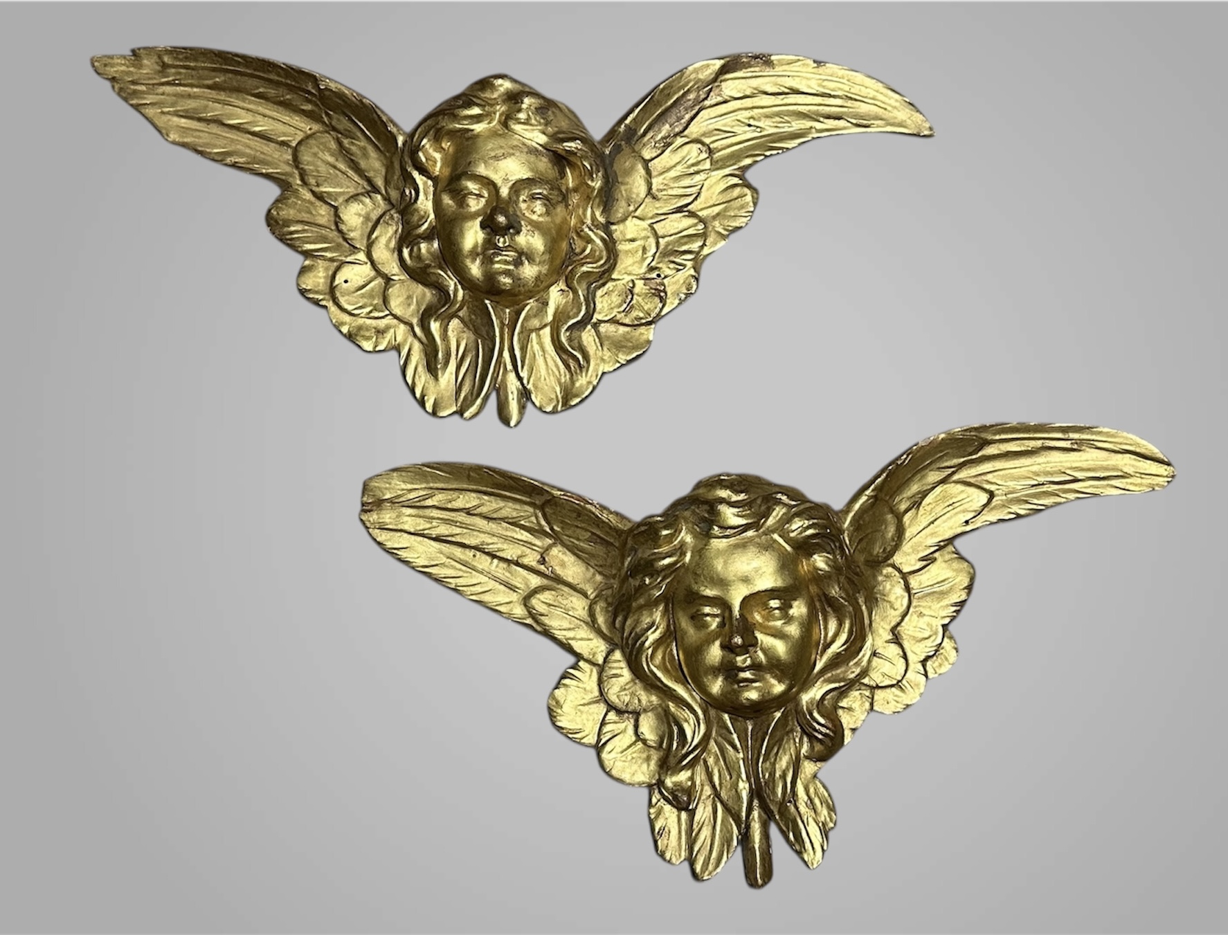 Coppia di cherubini alati in legno dorato – XVIII/ XIX secolo