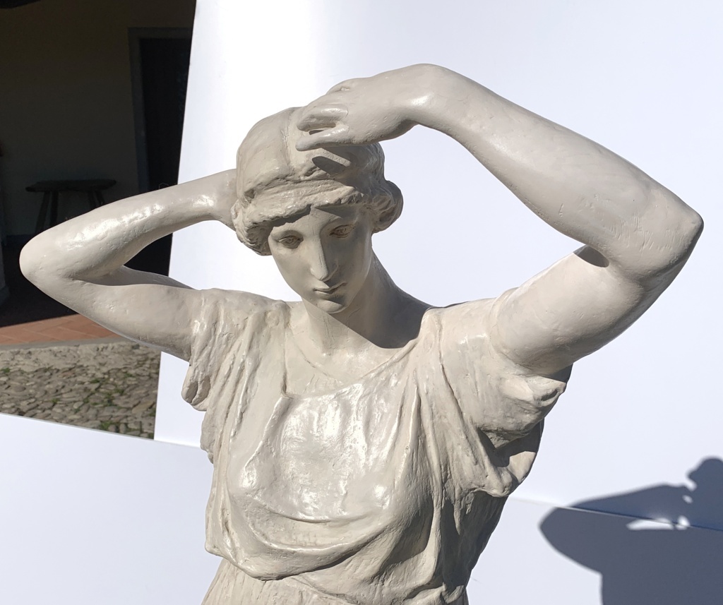 Realizzata interamente in scagliola. Raffigurante due figure vestite in toga romana con posa classicheggiante.