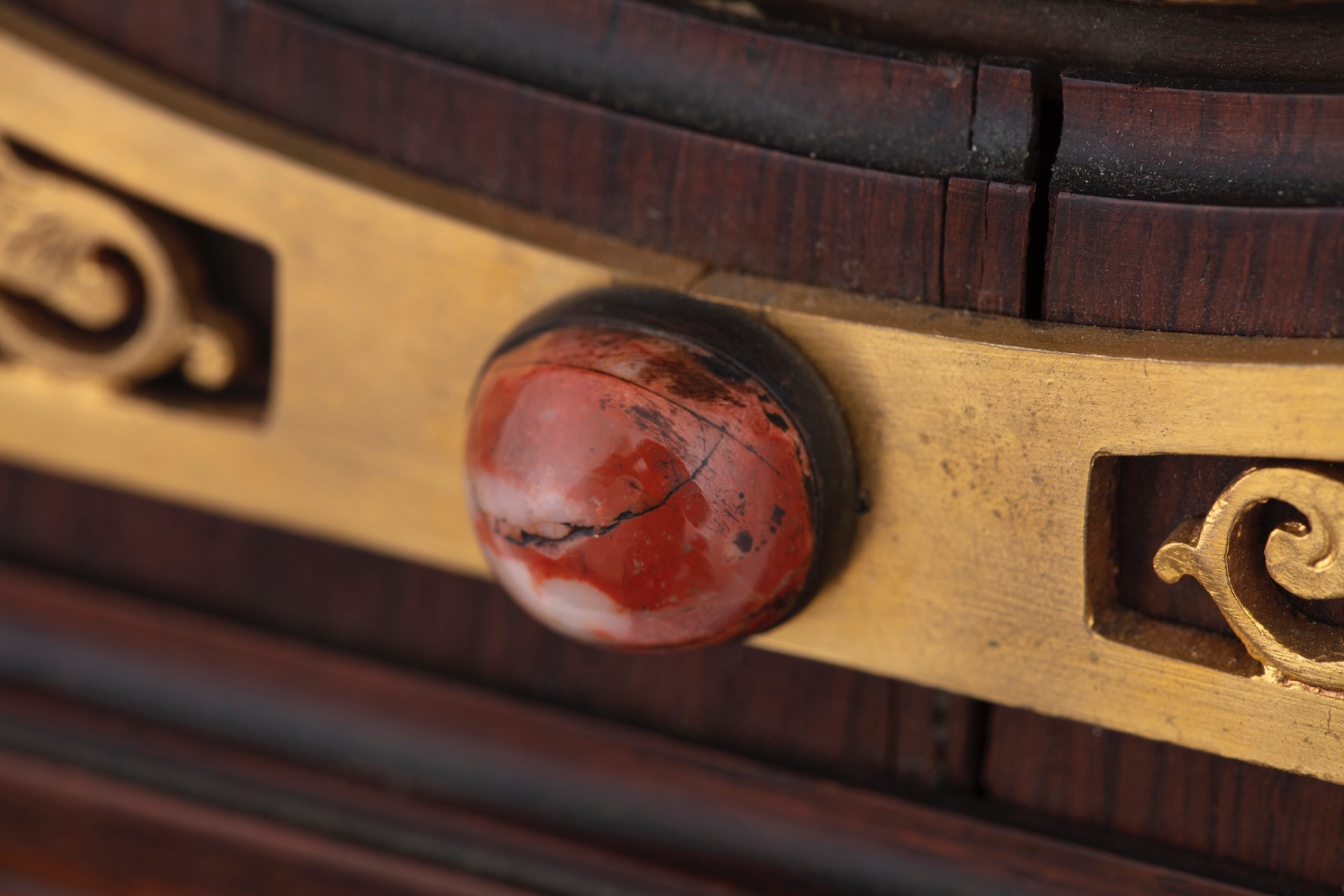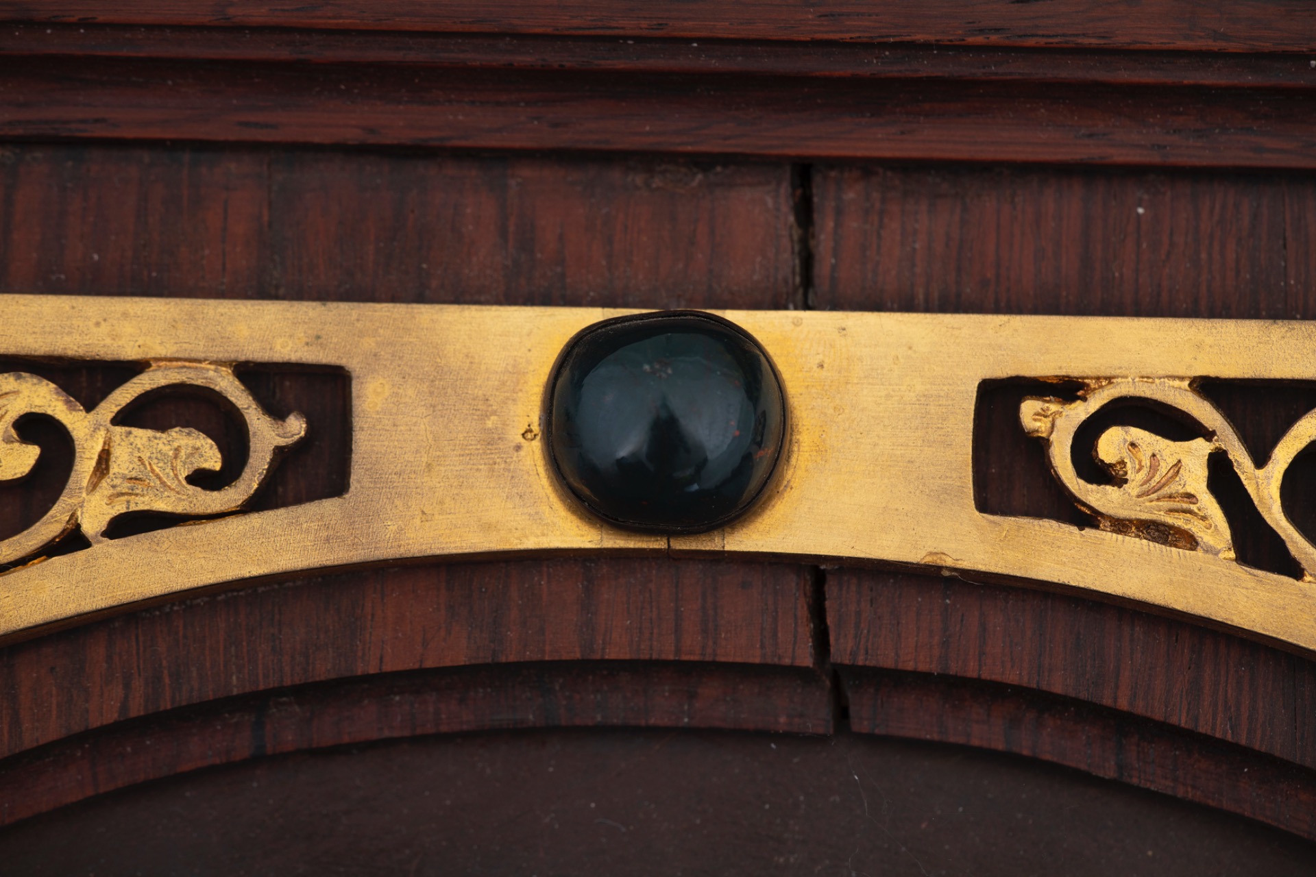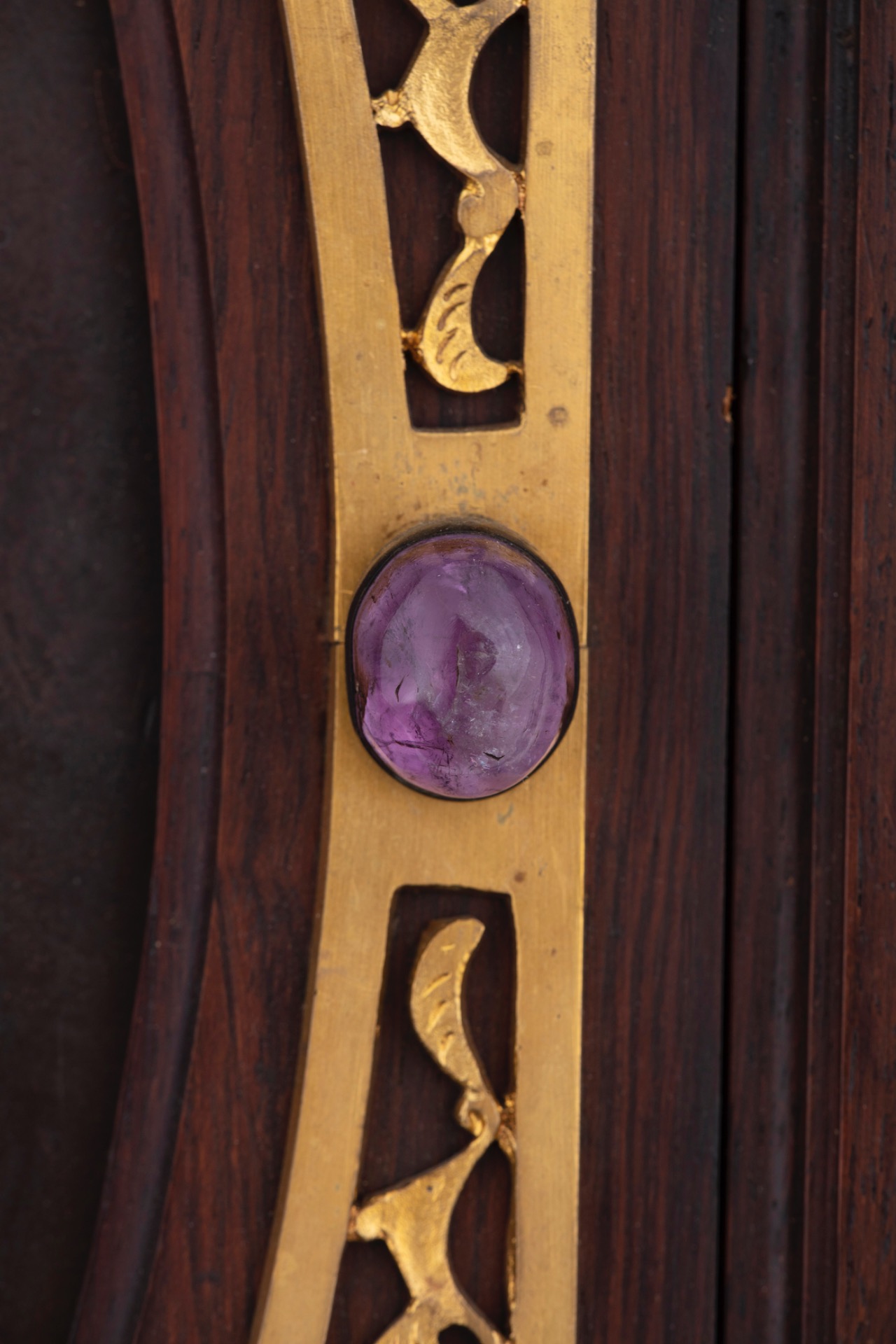 La composizione in ovale su sfondo decorato, impreziosita da applicazioni in bronzo dorato, era un formato decorativo molto in voga per l'arredamento di lusso del XIX secolo. Il bronzo è lavorato a rilievo e patinato con tinte differenti.