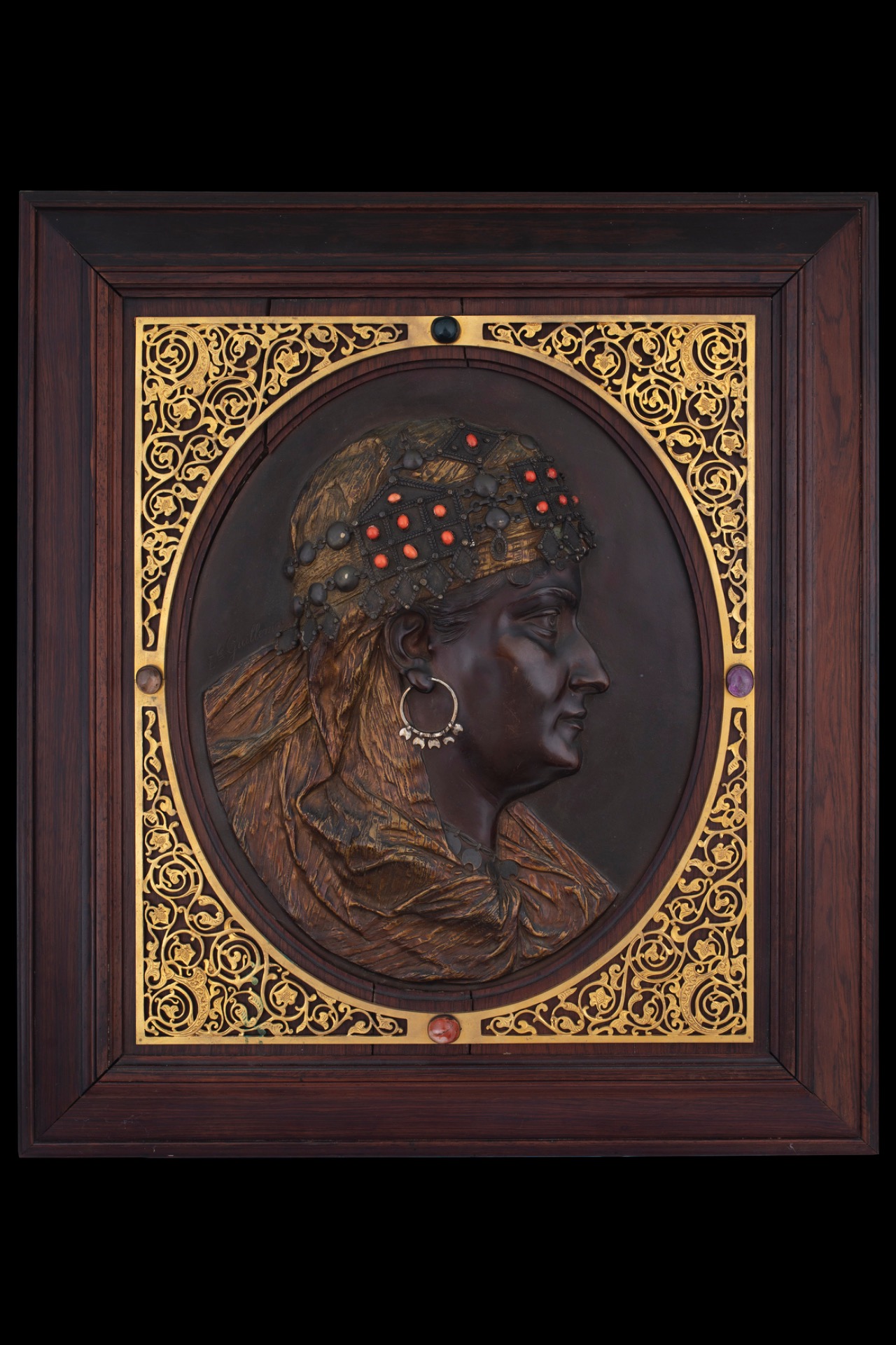 Émile Guillemin (1841-1907), “Profilo di donna orientale in bronzo con patina e smalti”