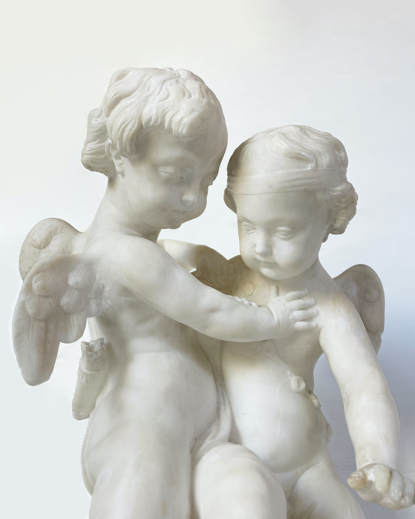 Scultura in alabastro di fine XIX - primo XX secolo di "Eros e Anteros".