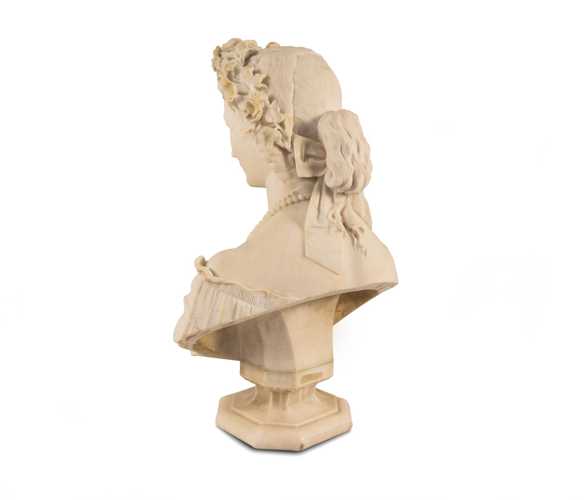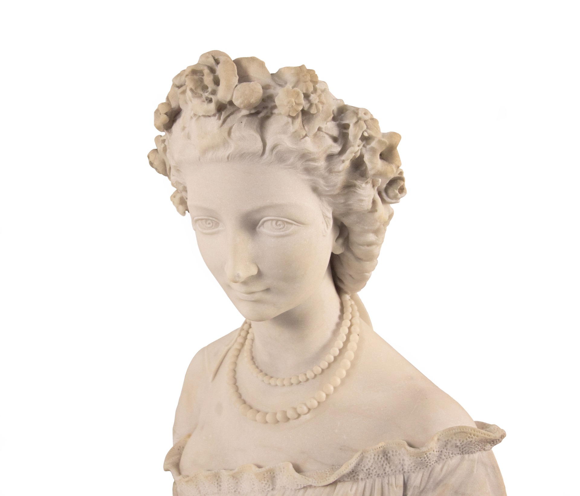 scultura in marmo, cm 60,5. Firmato e datato al retro: "Francesco Romano 1862"