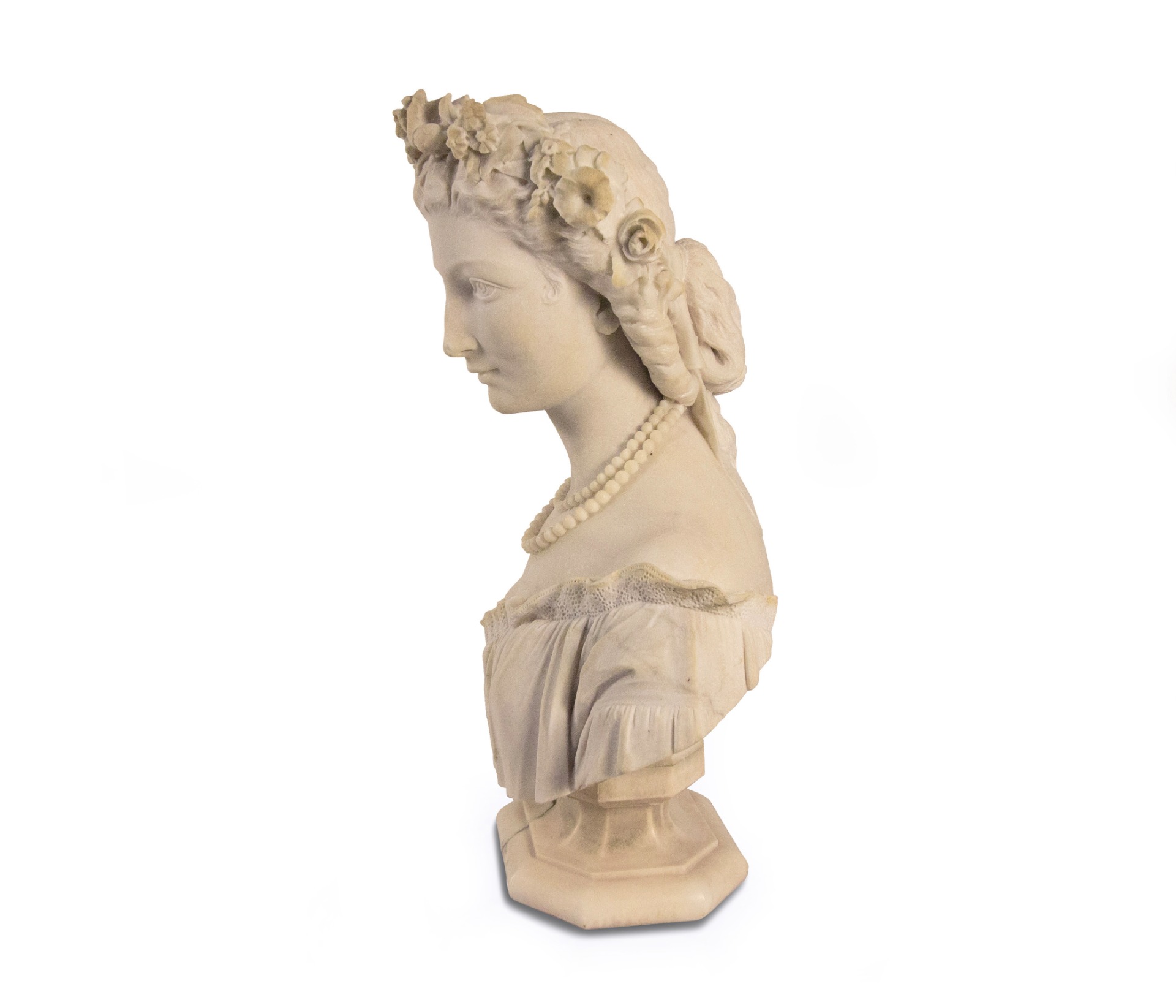 scultura in marmo, cm 60,5. Firmato e datato al retro: "Francesco Romano 1862"