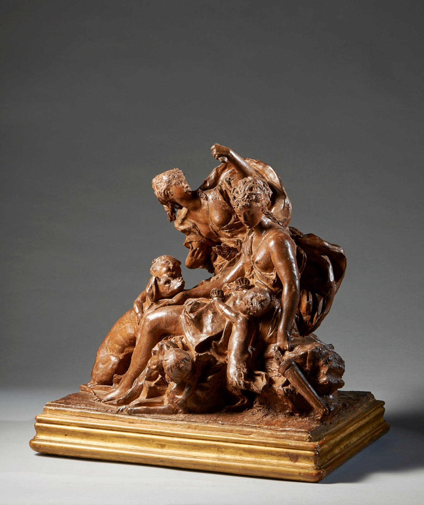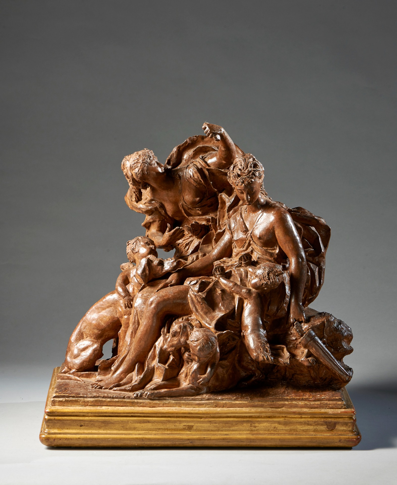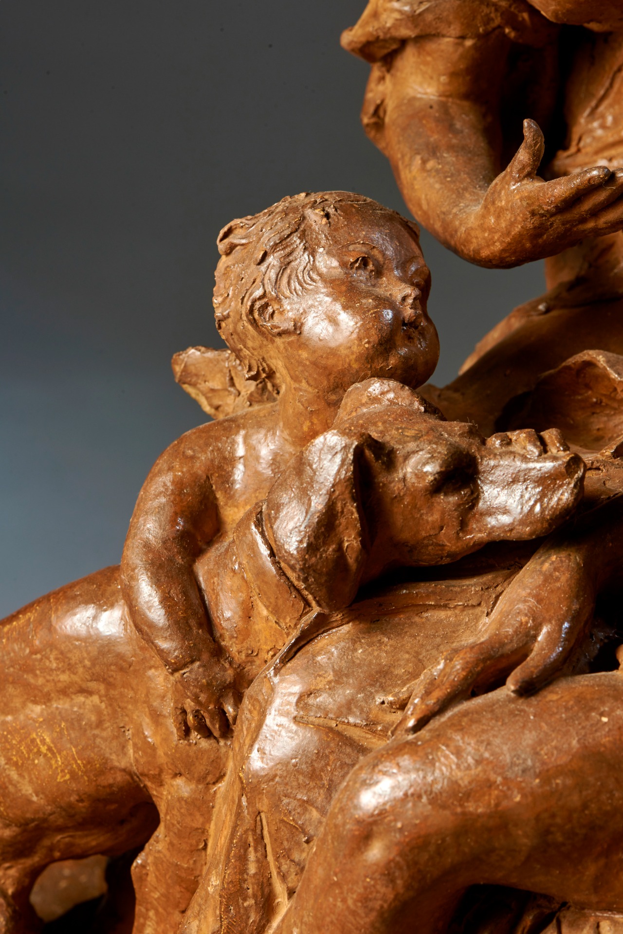 Diana the huntress and a Handmaid tempted by Satyrs in the guise of innocent Putti, terracotta sculpture, Paris, 19th century