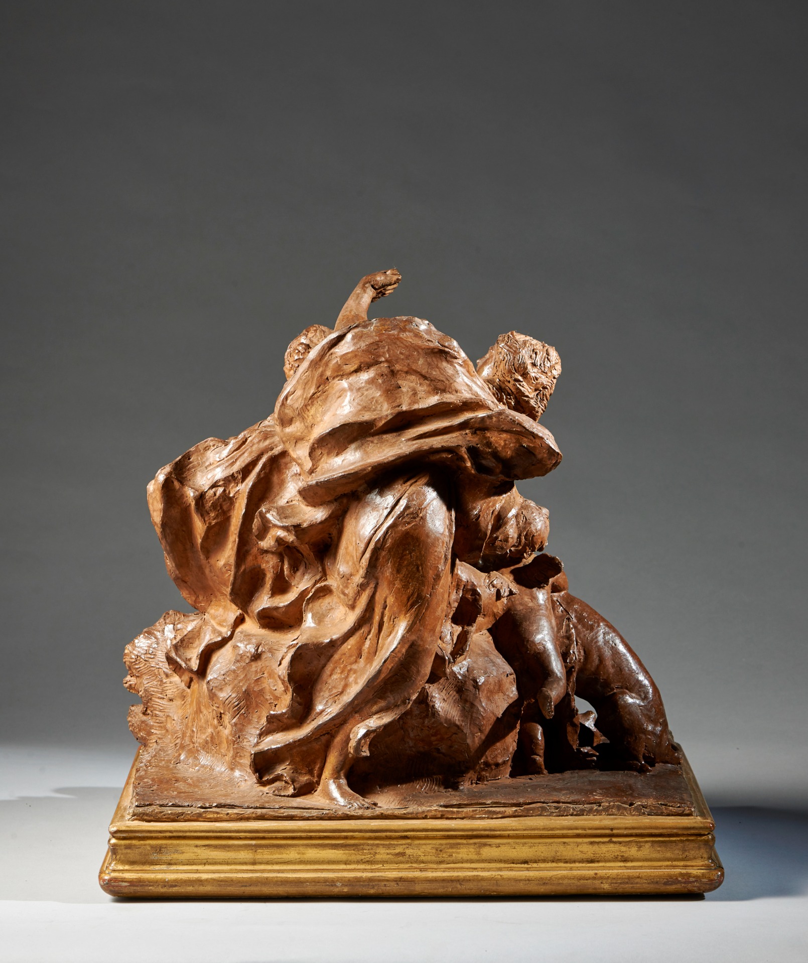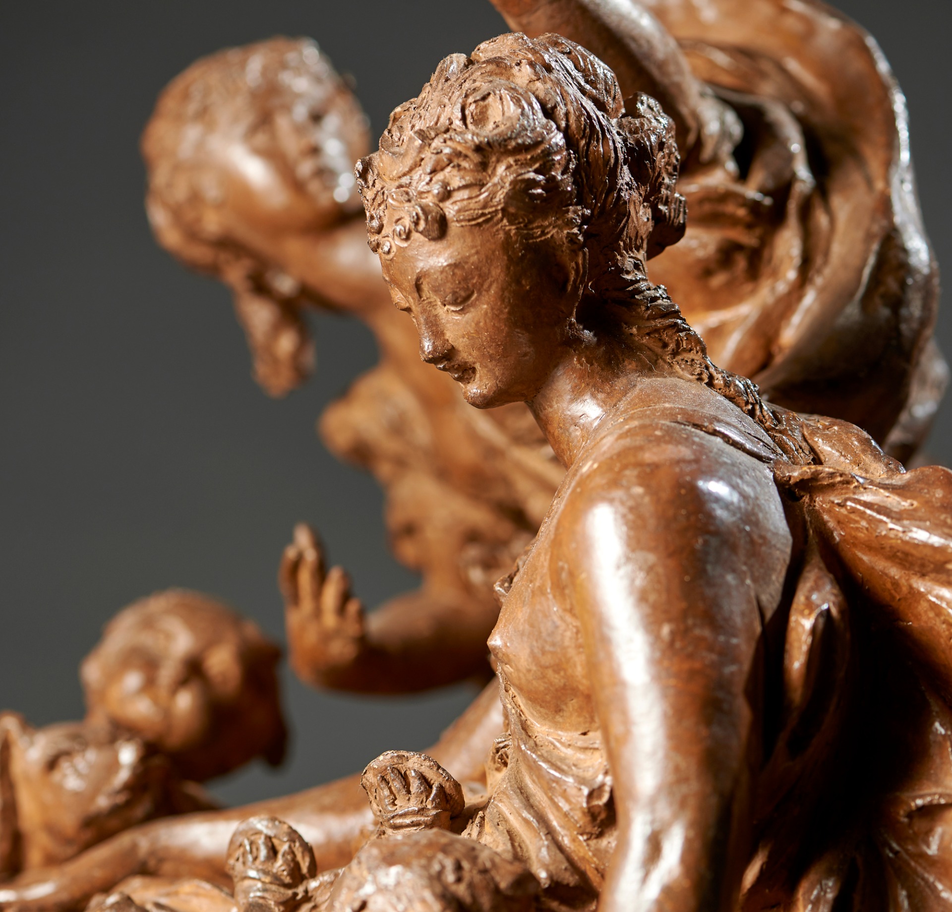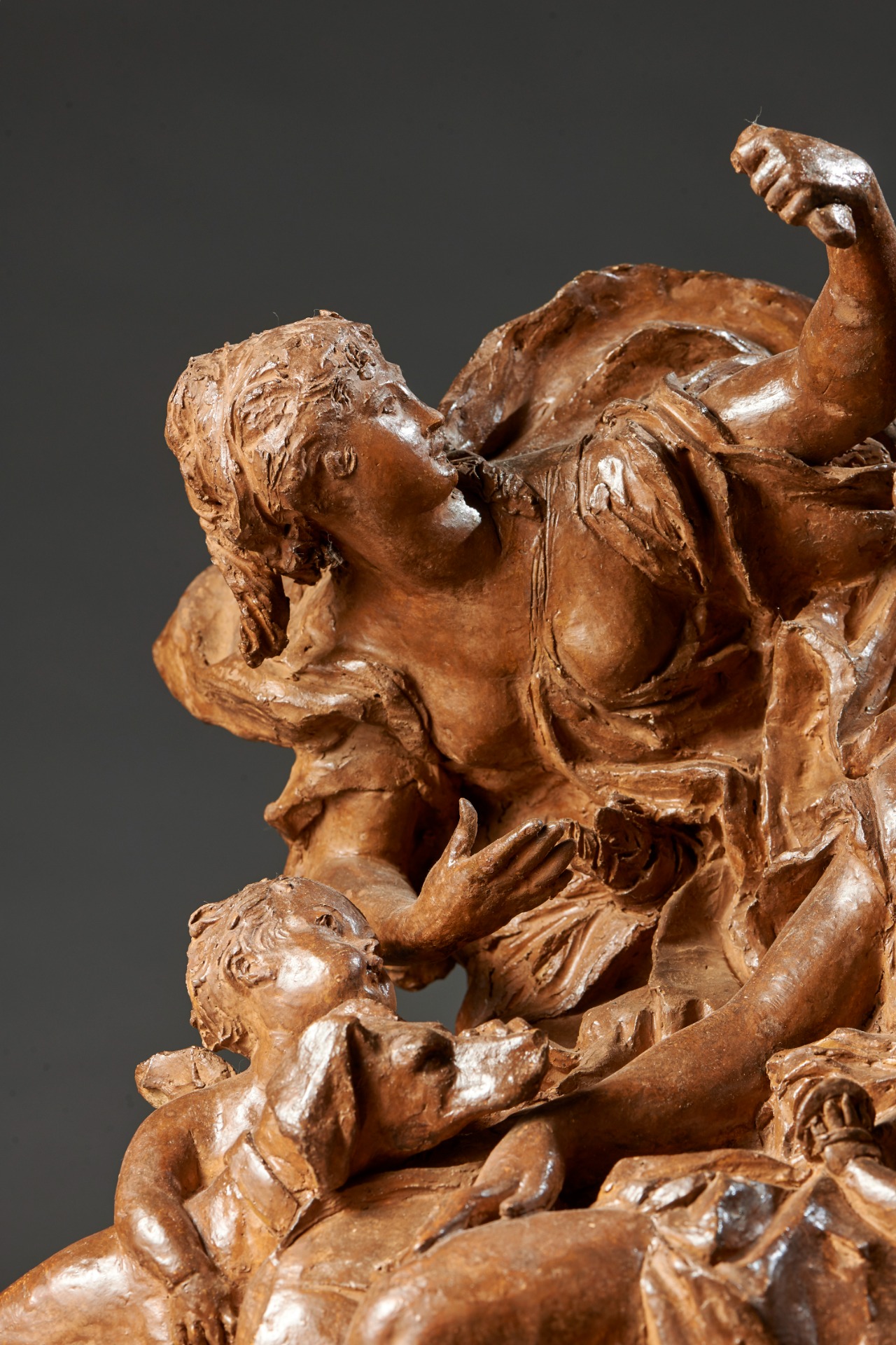 Diana the huntress and a Handmaid tempted by Satyrs in the guise of innocent Putti, terracotta sculpture, Paris, 19th century