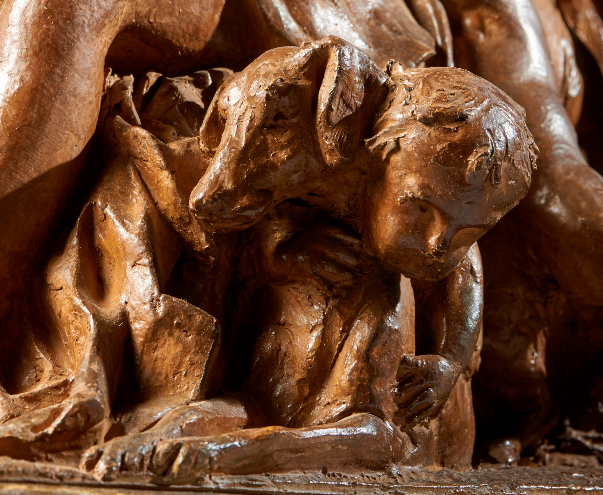 Diane la chasseresse et une Servante tentées par des Satyres sous les traits d'innocents Putti, sculpture en terre cuite, Paris, XIXe siècle