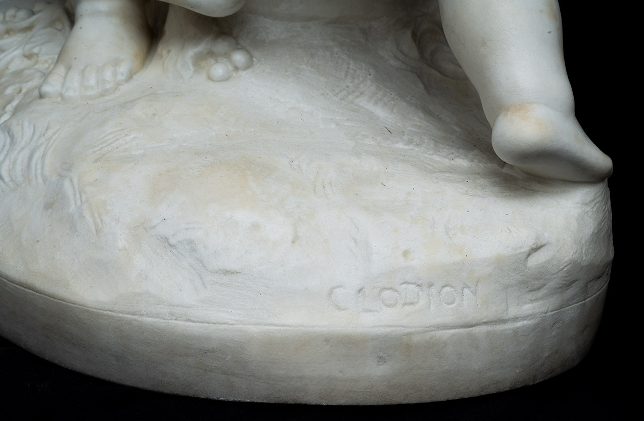 Scultura antica in marmo bianco statuario raffigurante la festa degli amorini firmata" Clodion 1738-1814" Francia inizio XIX secolo.