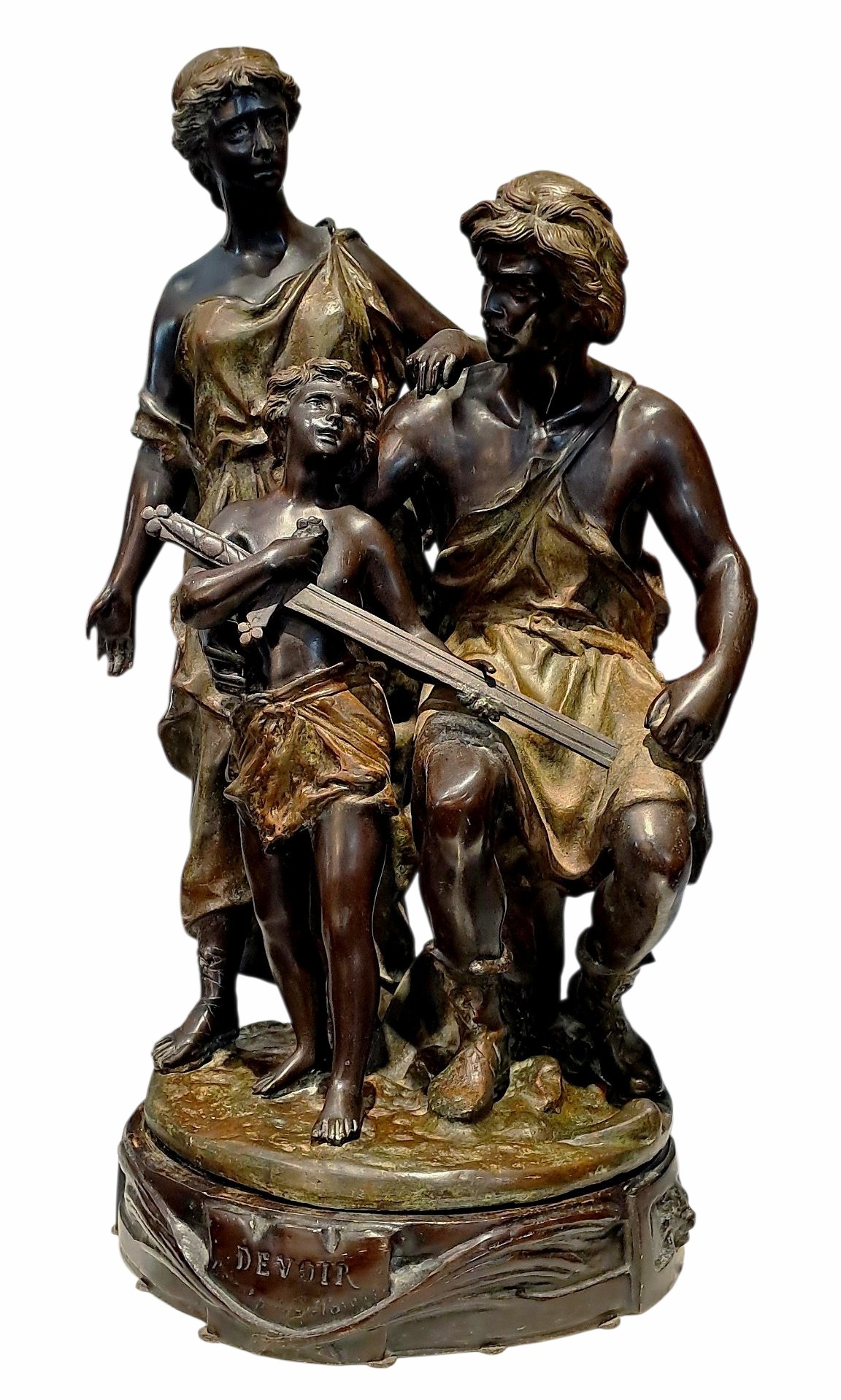 Questo è un magnifico gruppo scultoreo in bronzo patinato, intitolato "Devoir" (Dovere), opera del celebre artista francese Ernest Rancoulet (1842-1905).
