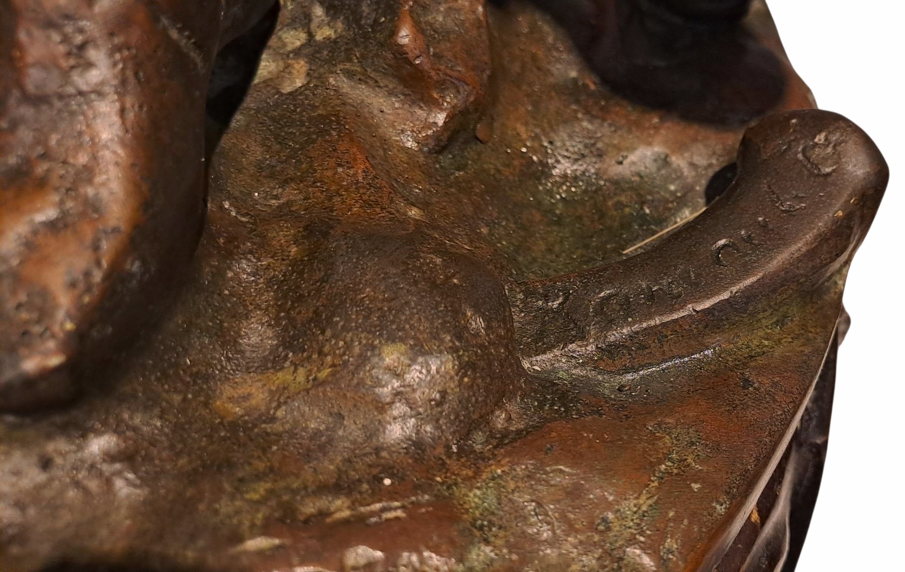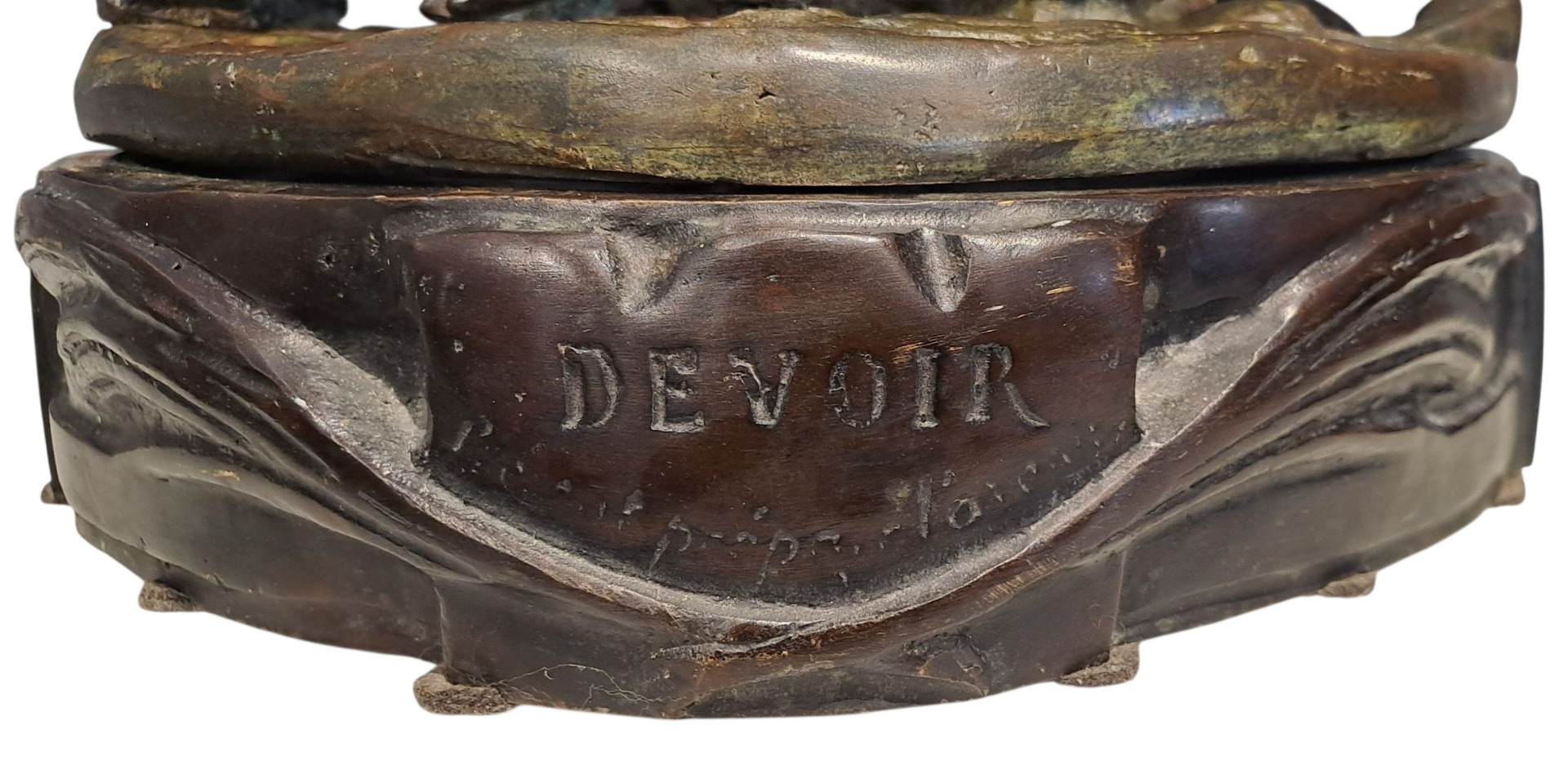 La base circolare in bronzo è finemente lavorata e reca il titolo dell'opera, "Devoir".