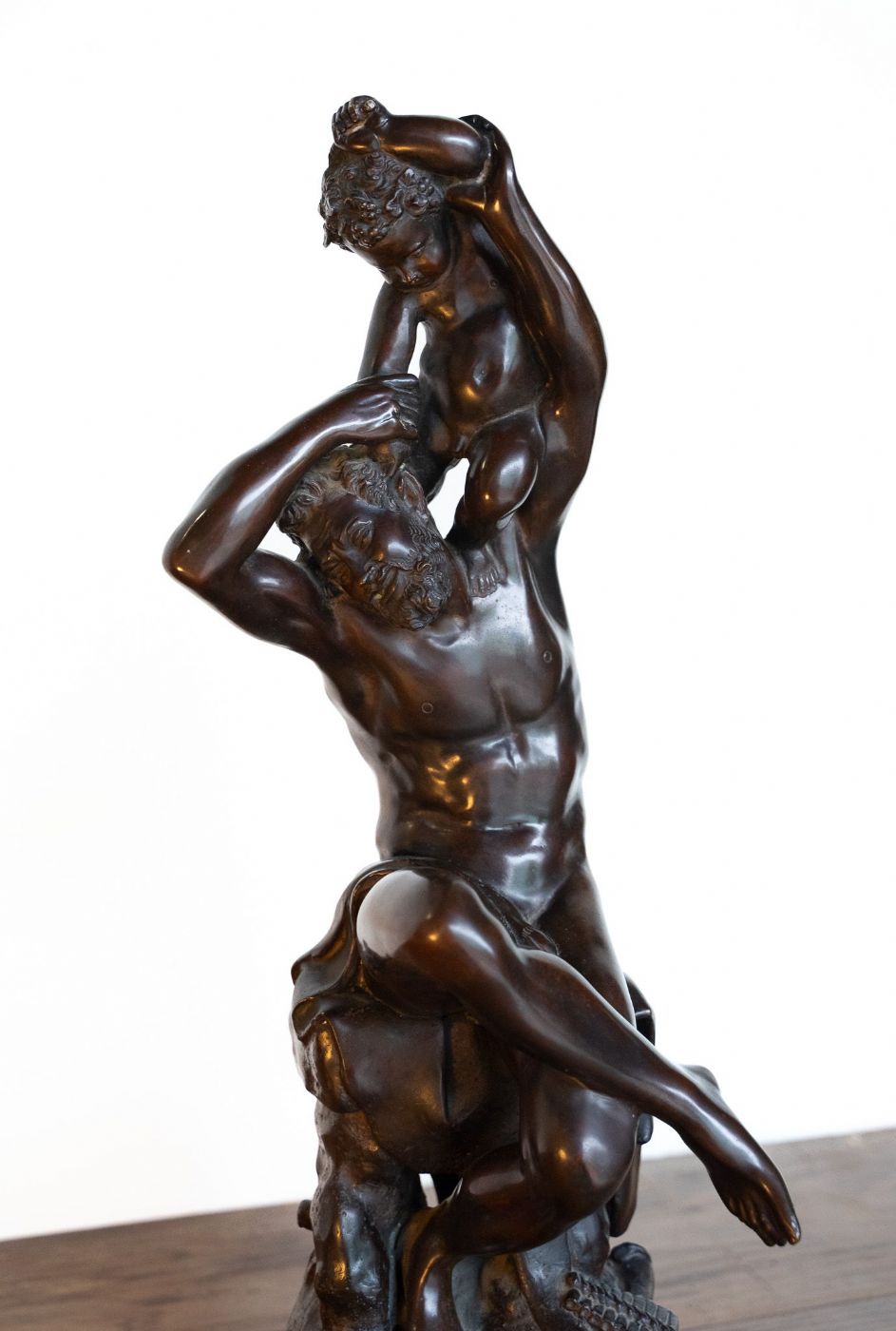 Scultura in bronzo di nudo maschile con bambino – Ferdinando De Luca, Napoli, fine XIX secolo
