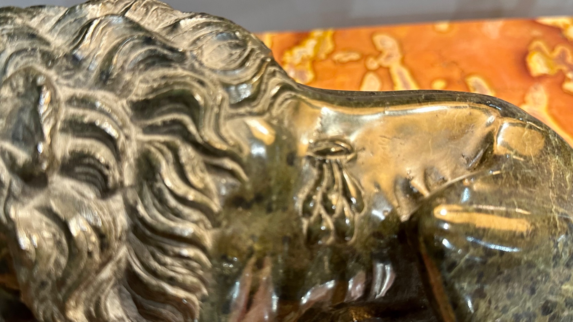 Da Bertel Thorvaldsen: un leone di Lucerna in marmo serpentino finemente scolpito. Nel 1818-1819, il famoso scultore danese Bertel Thorvaldsen (1770-1844) realizzò un modello per un monumento alle Guardie Svizzere che avevano combattuto a Parigi in difesa di Re Luigi XVI durante la presa delle Tuileries da parte delle forze rivoluzionarie il 10 agosto 1792.