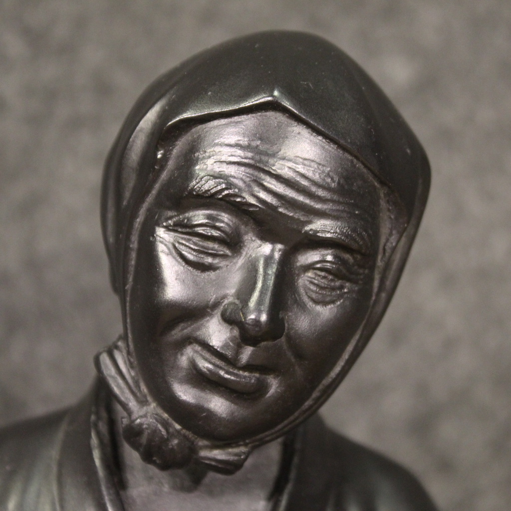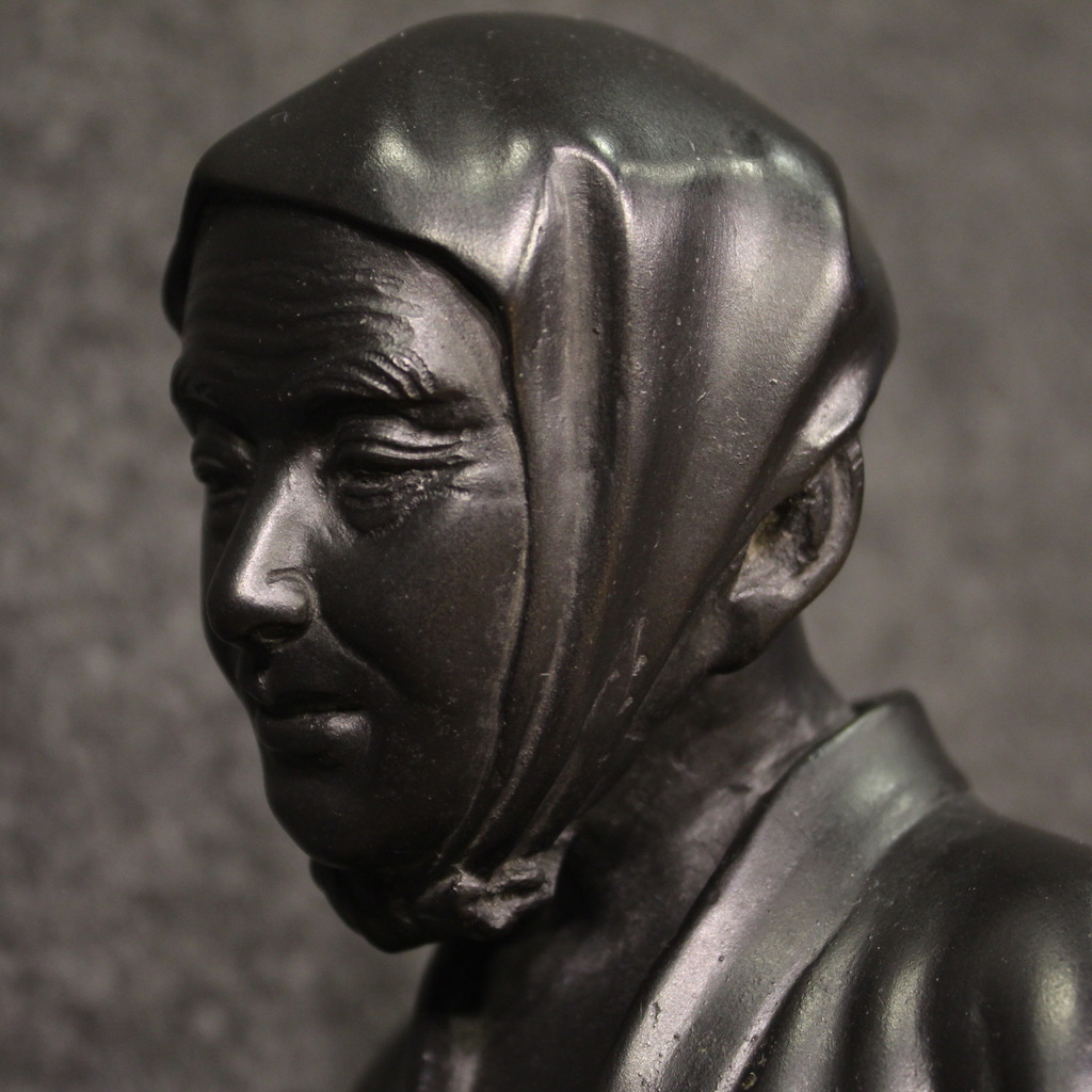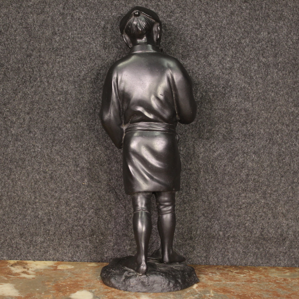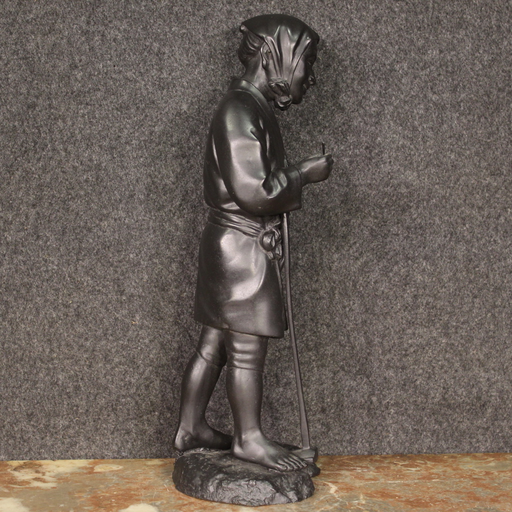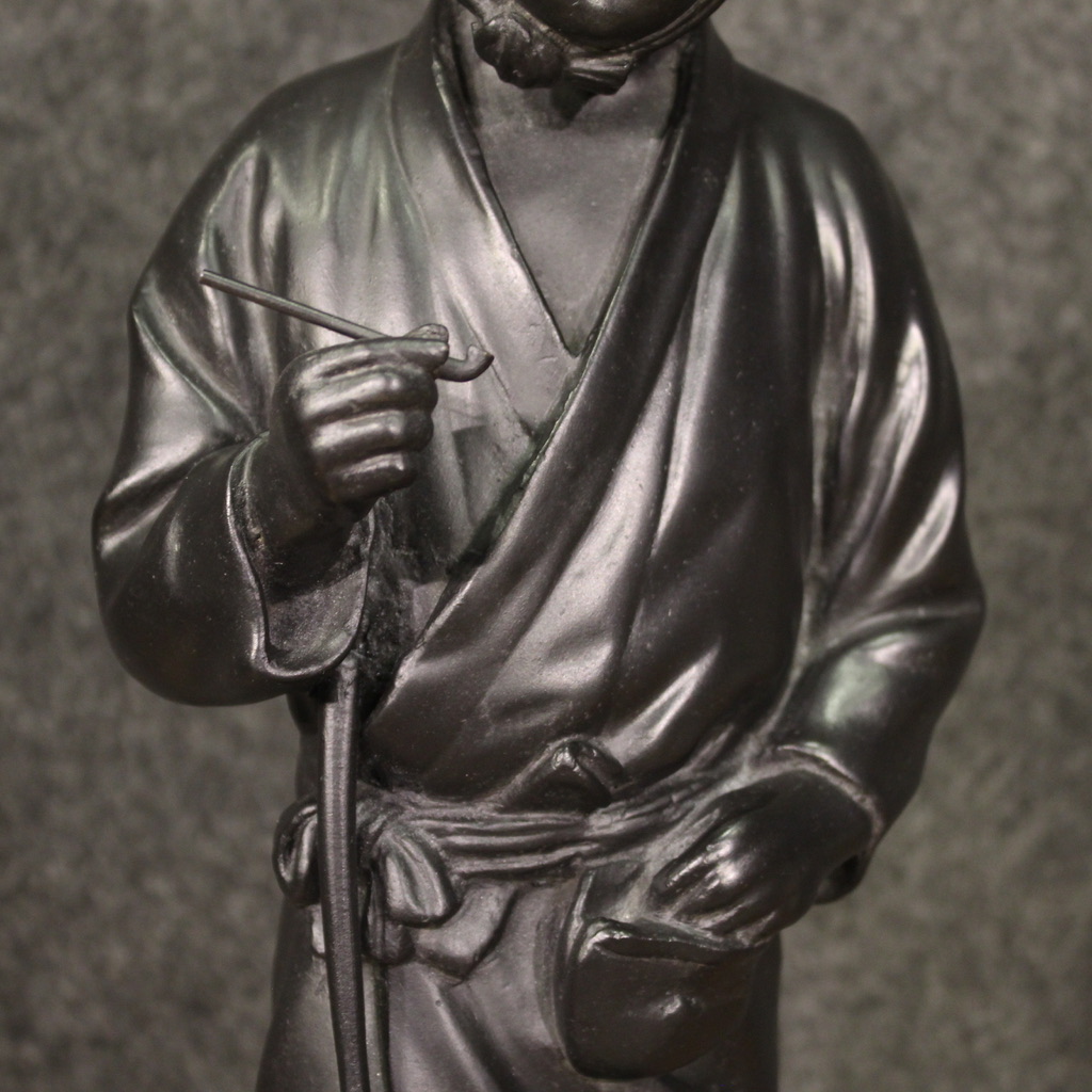 Scultura giapponese in bronzo fumatore di pipa del XX secolo