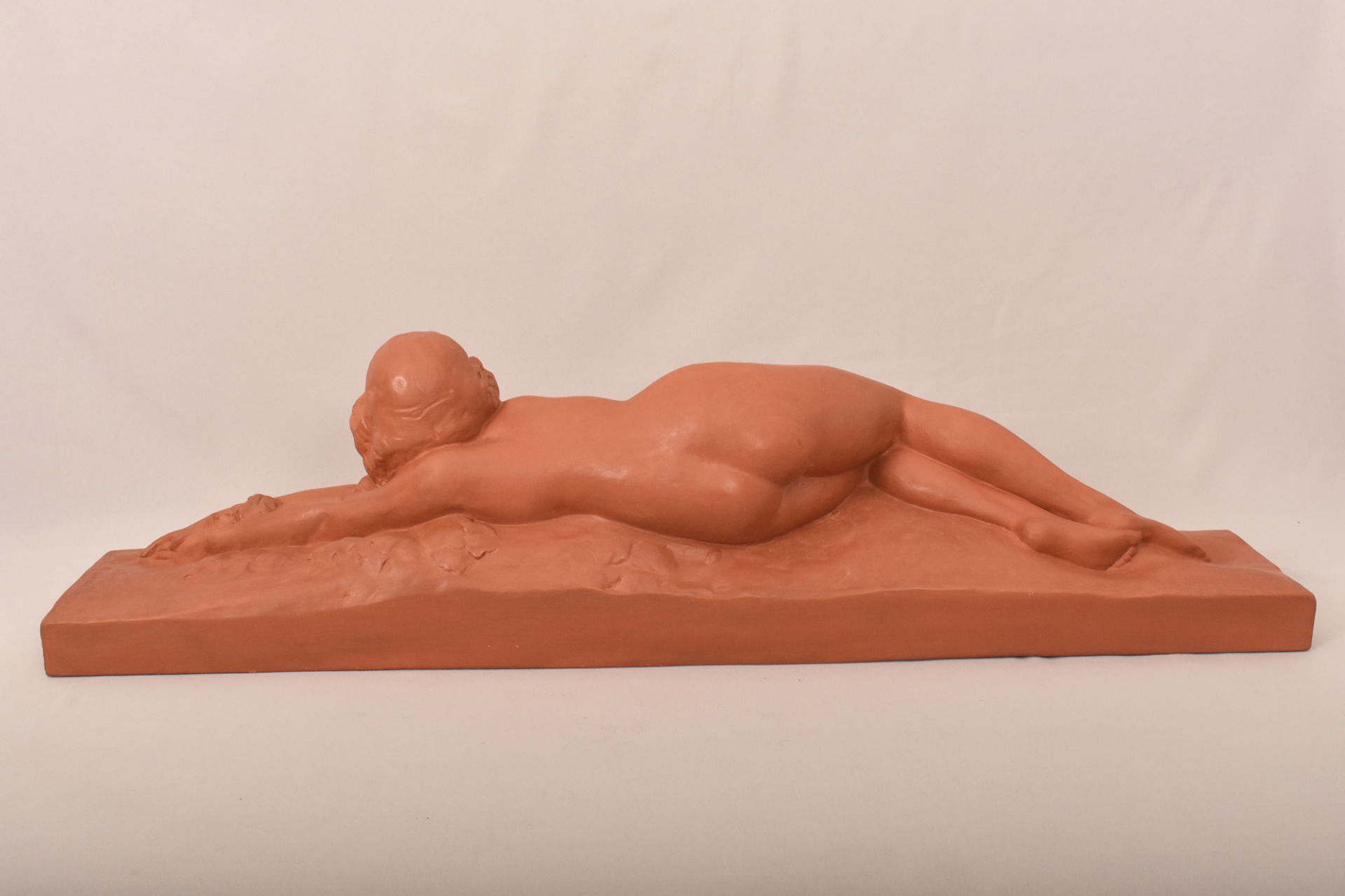 La categoria sculture antiche propone una Scultura in Terracotta, che rappresenta un Nudo di Giovane Donna Distesa,