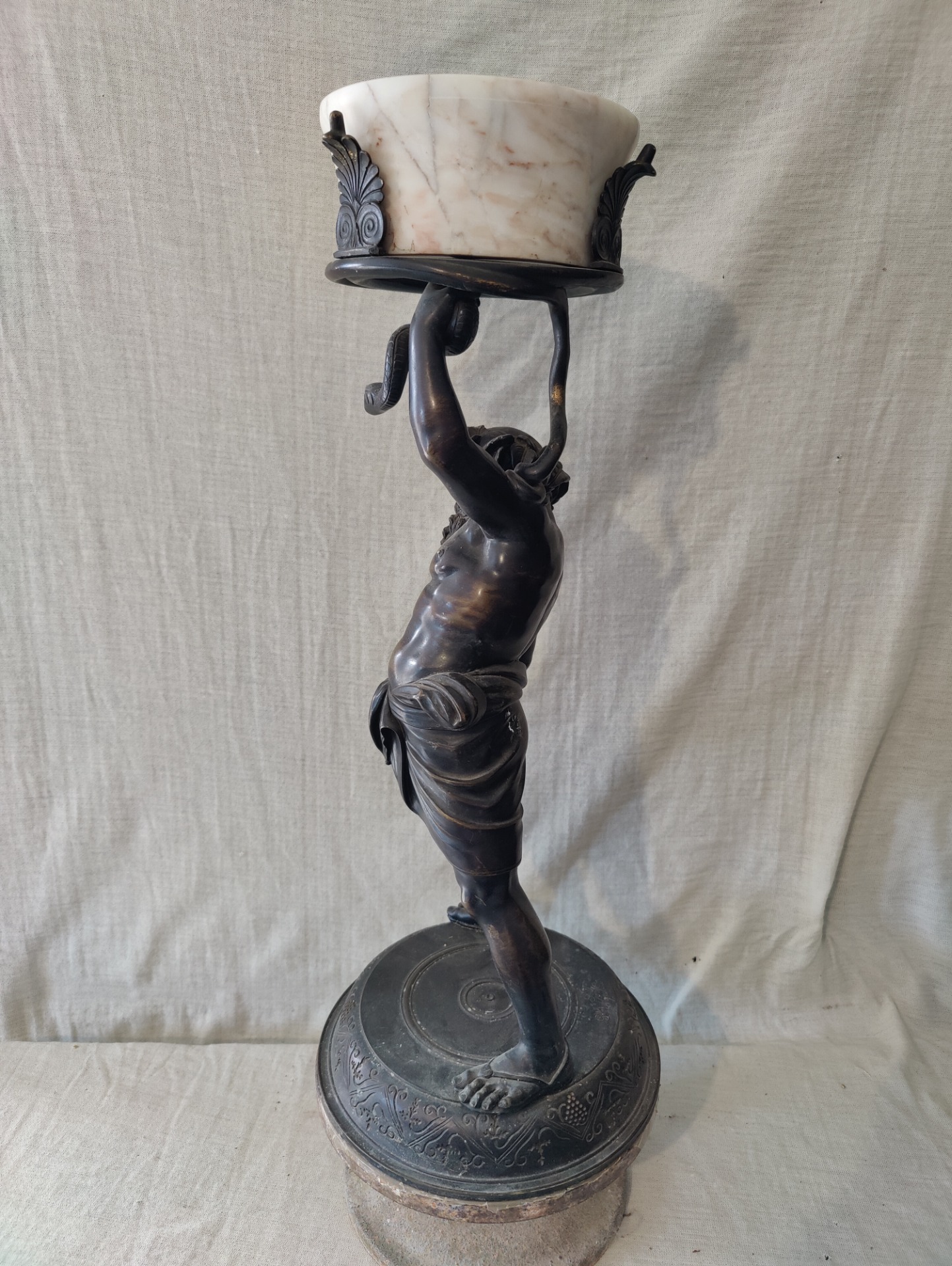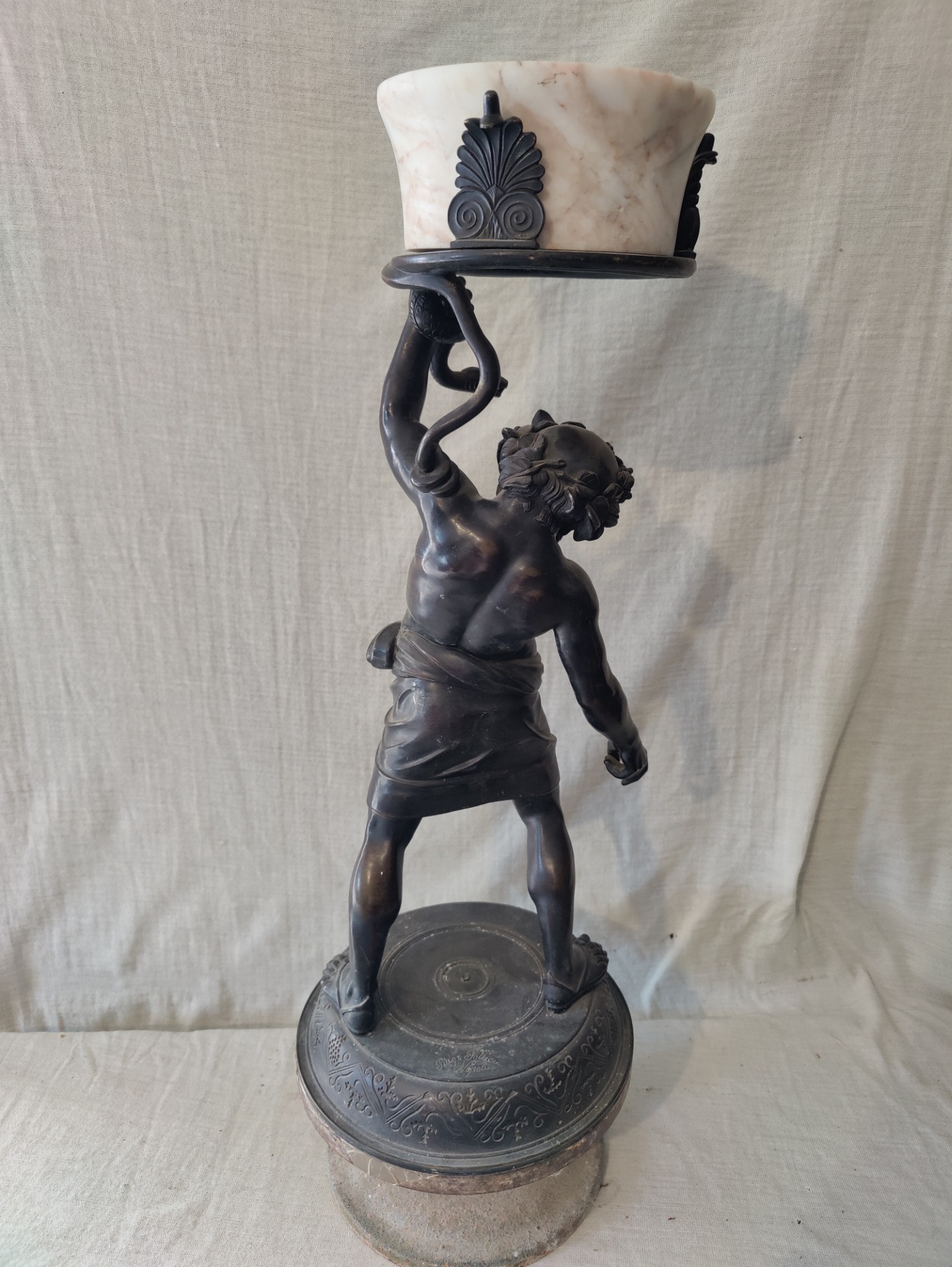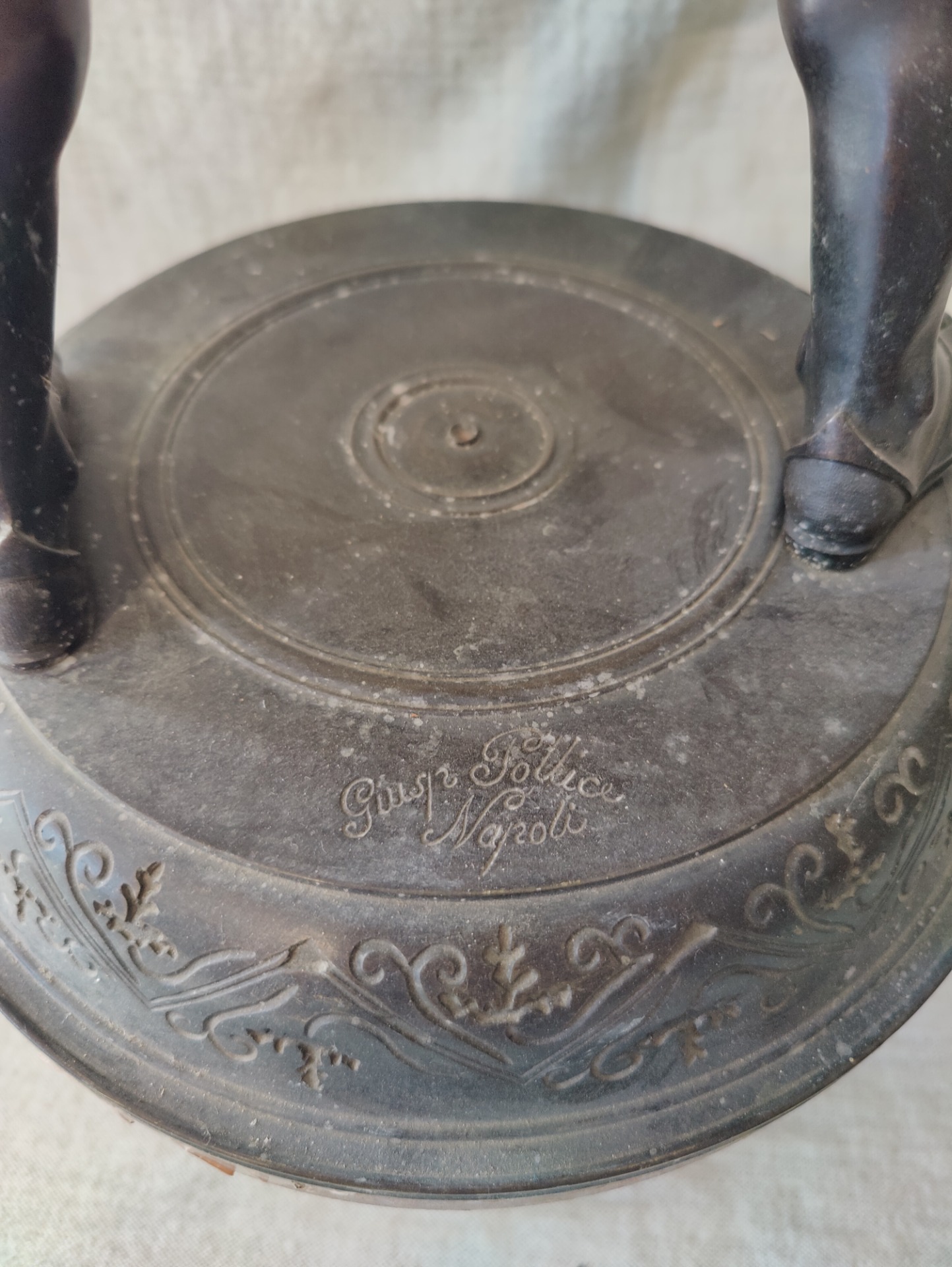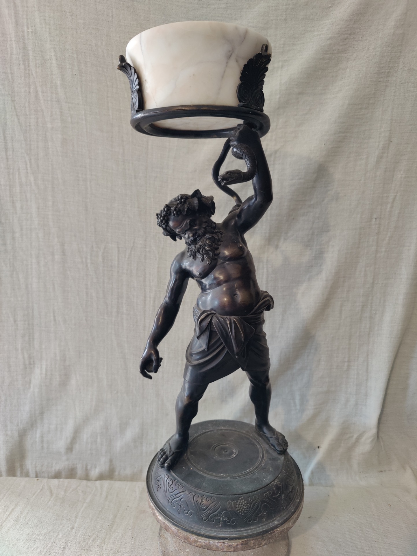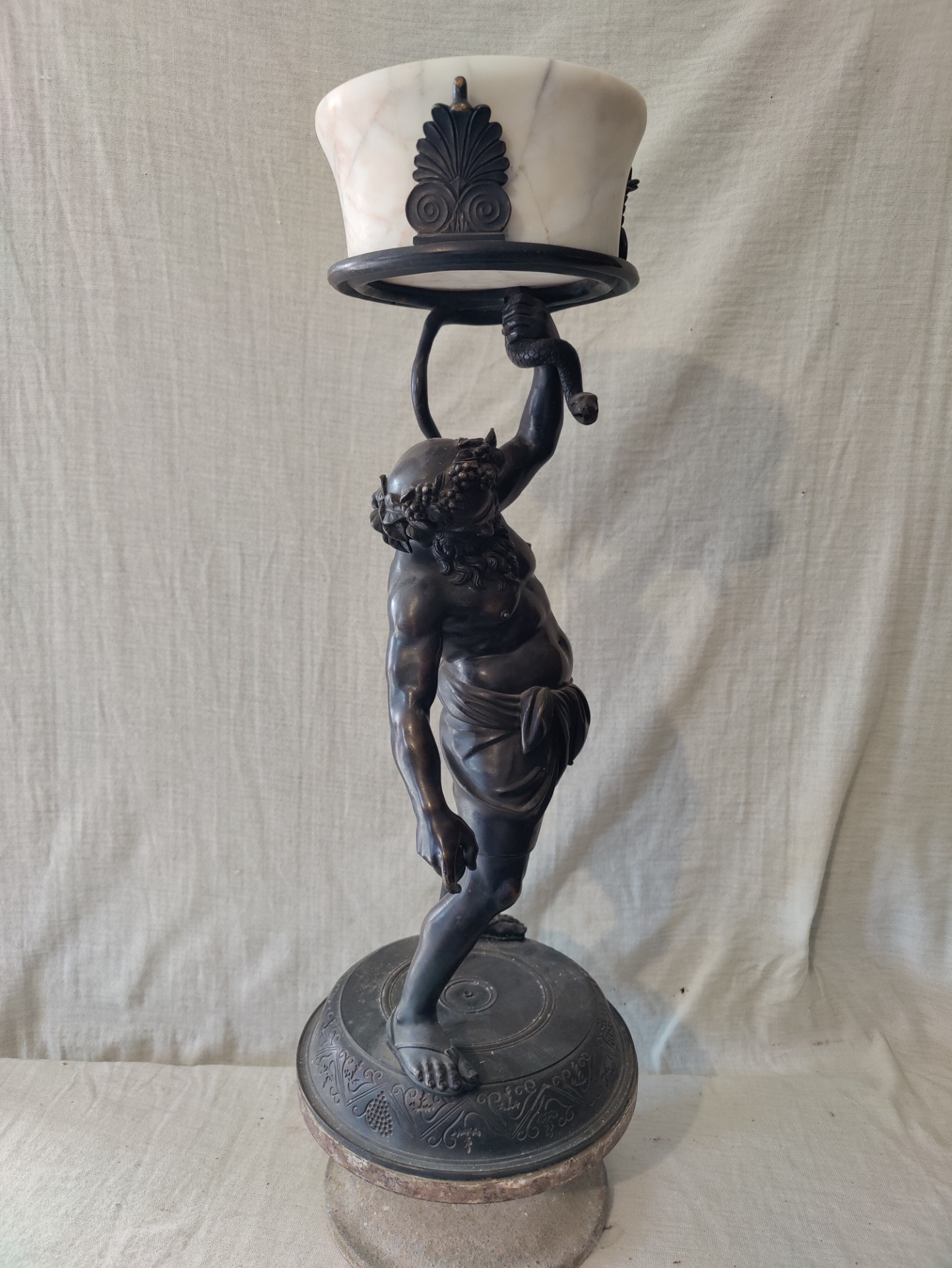 Strepitosa scultura in bronzo con vaschetta in alabastro raffigurante il Sileno pompeiano.