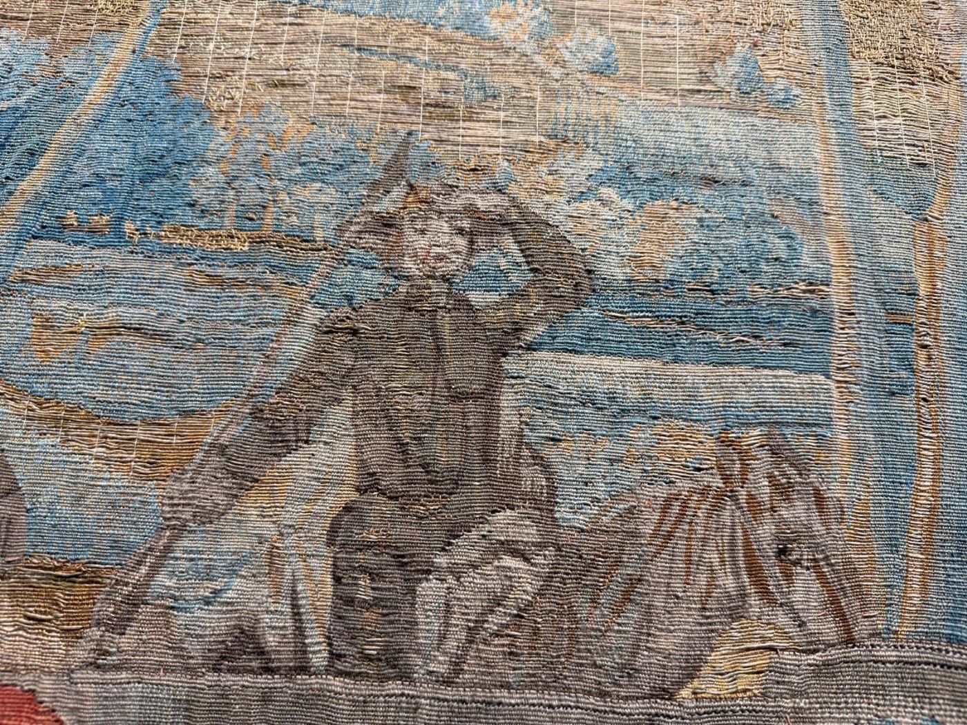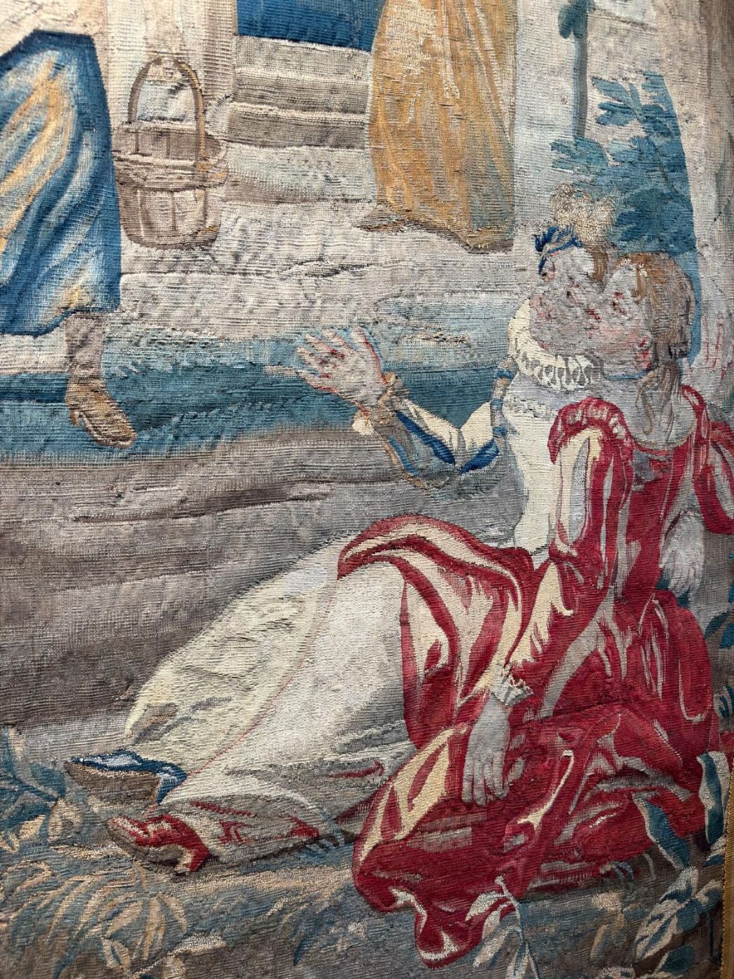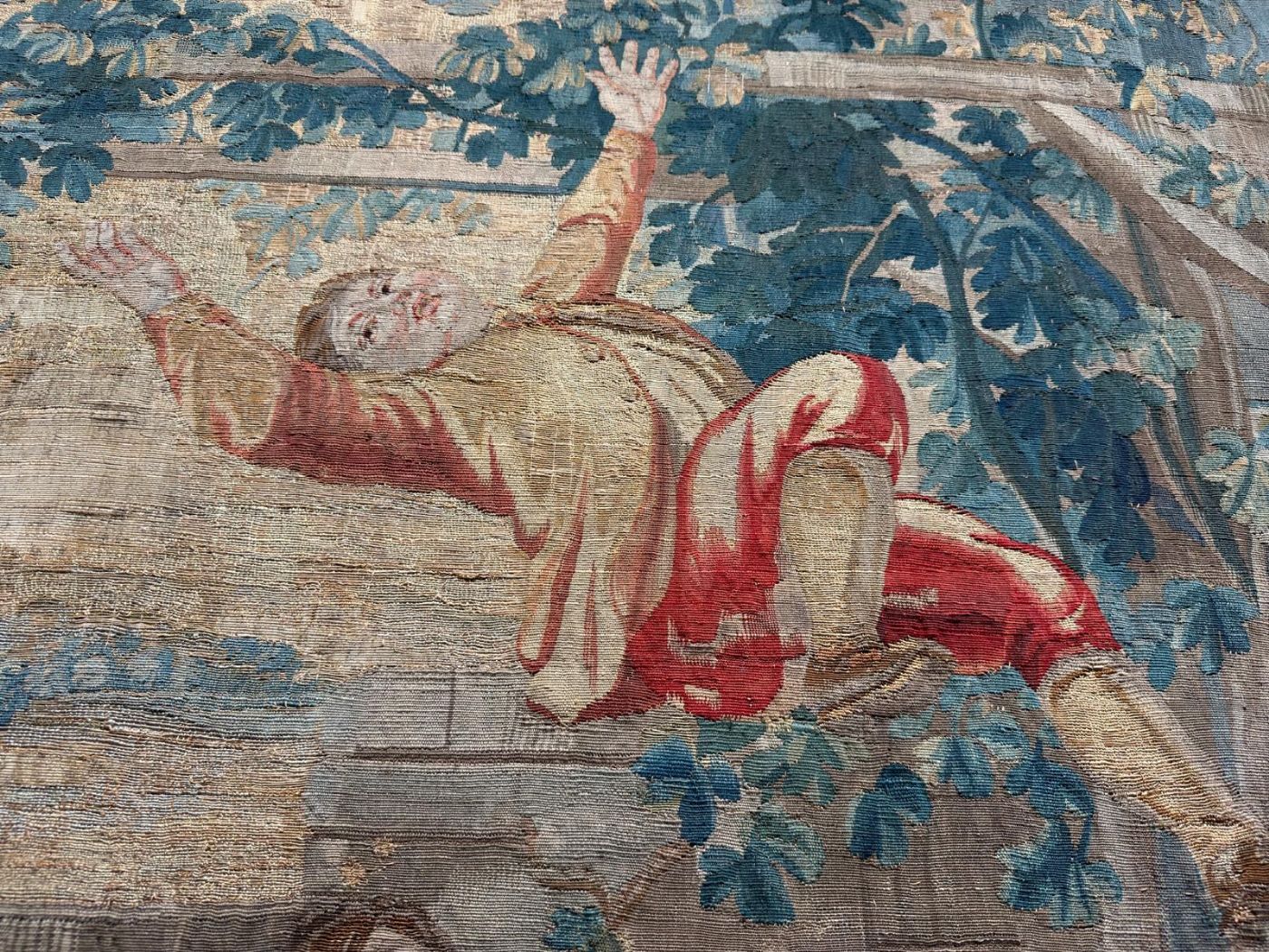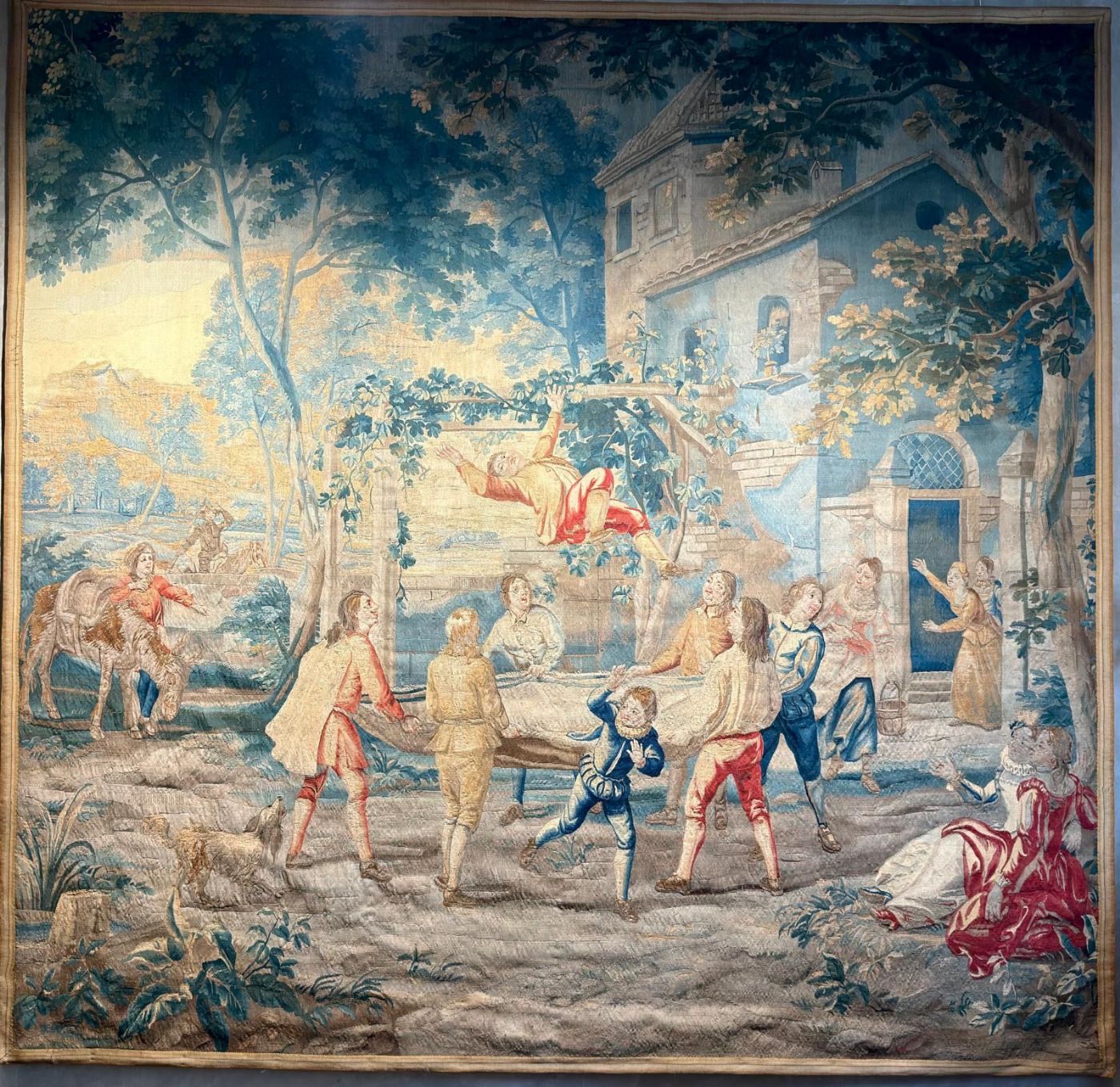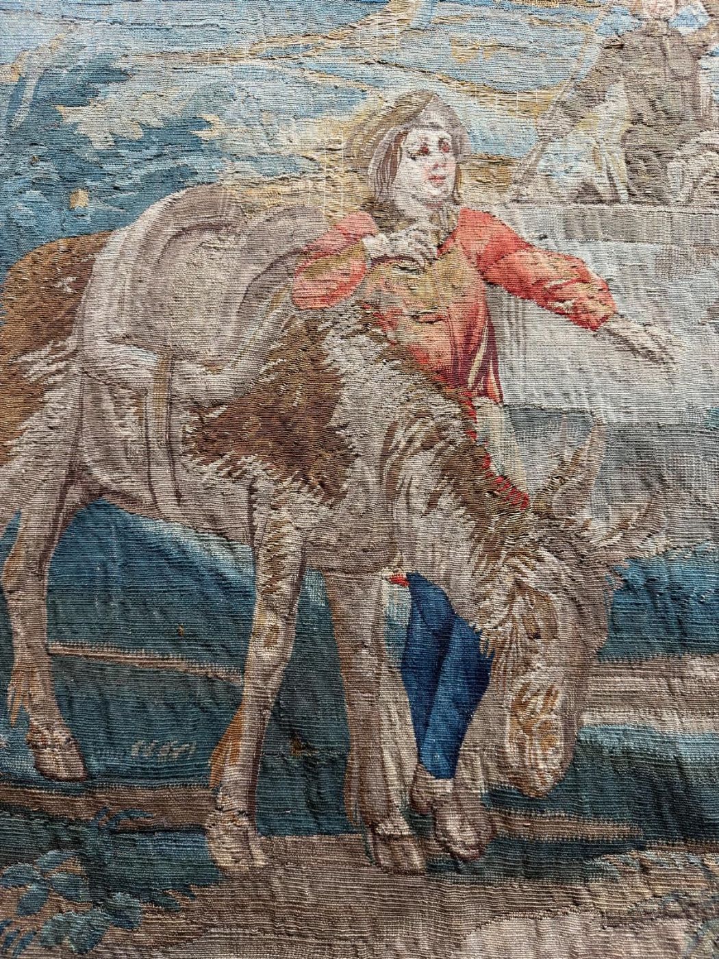 L'Arazzo che proponiamo presenta un raro esempio di arazzo francese del XVI secolo È raffigurauna scena bucolica di grande impatto, gioiosa e chiara: un arazzo che incarna la luce e la serenità della campagna, con colori nitidi e figure distinte che comunicano immediate sensazioni di allegria e ordine.