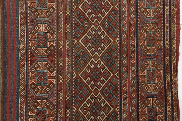Bella antica bisaccia Shahsavan, con insolite dimensioni, proveniente dalla mia collezione privata. Ha bisogno di qualche piccolo restauro, che posso eseguire su richiesta. La trovo molto interessante appesa a parete, ma è facilmente ambientabile ovunque.