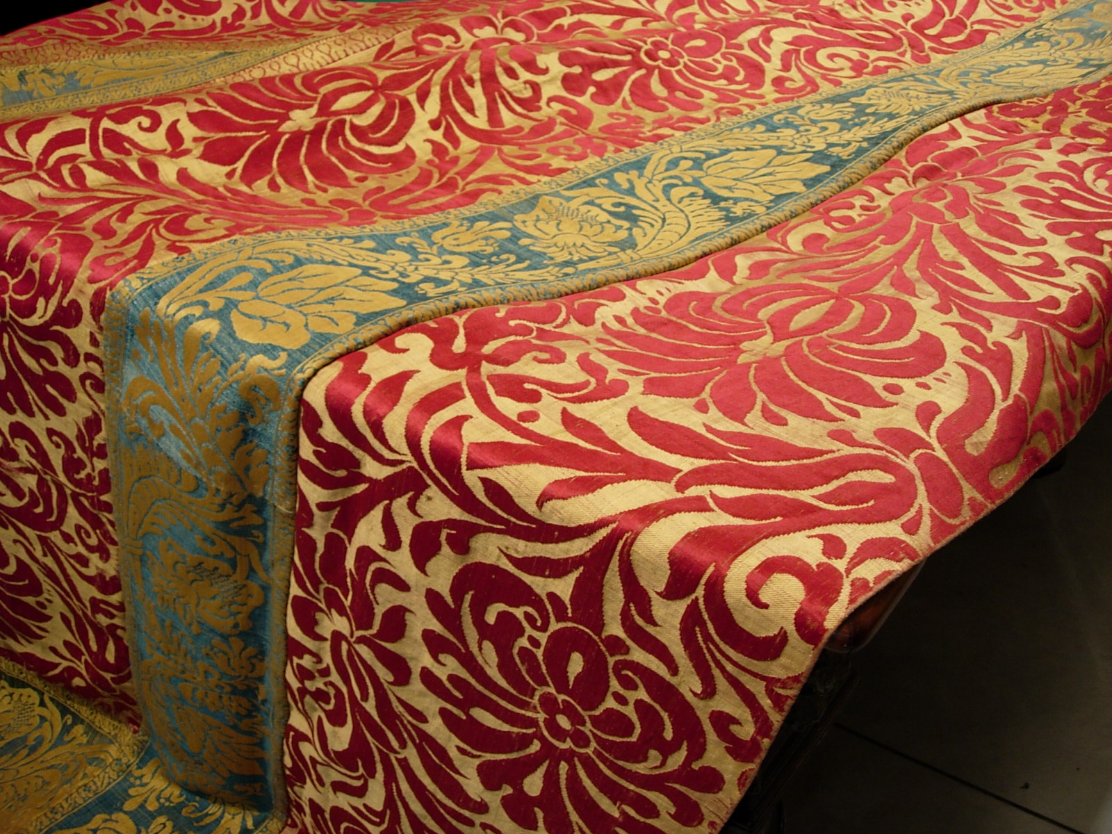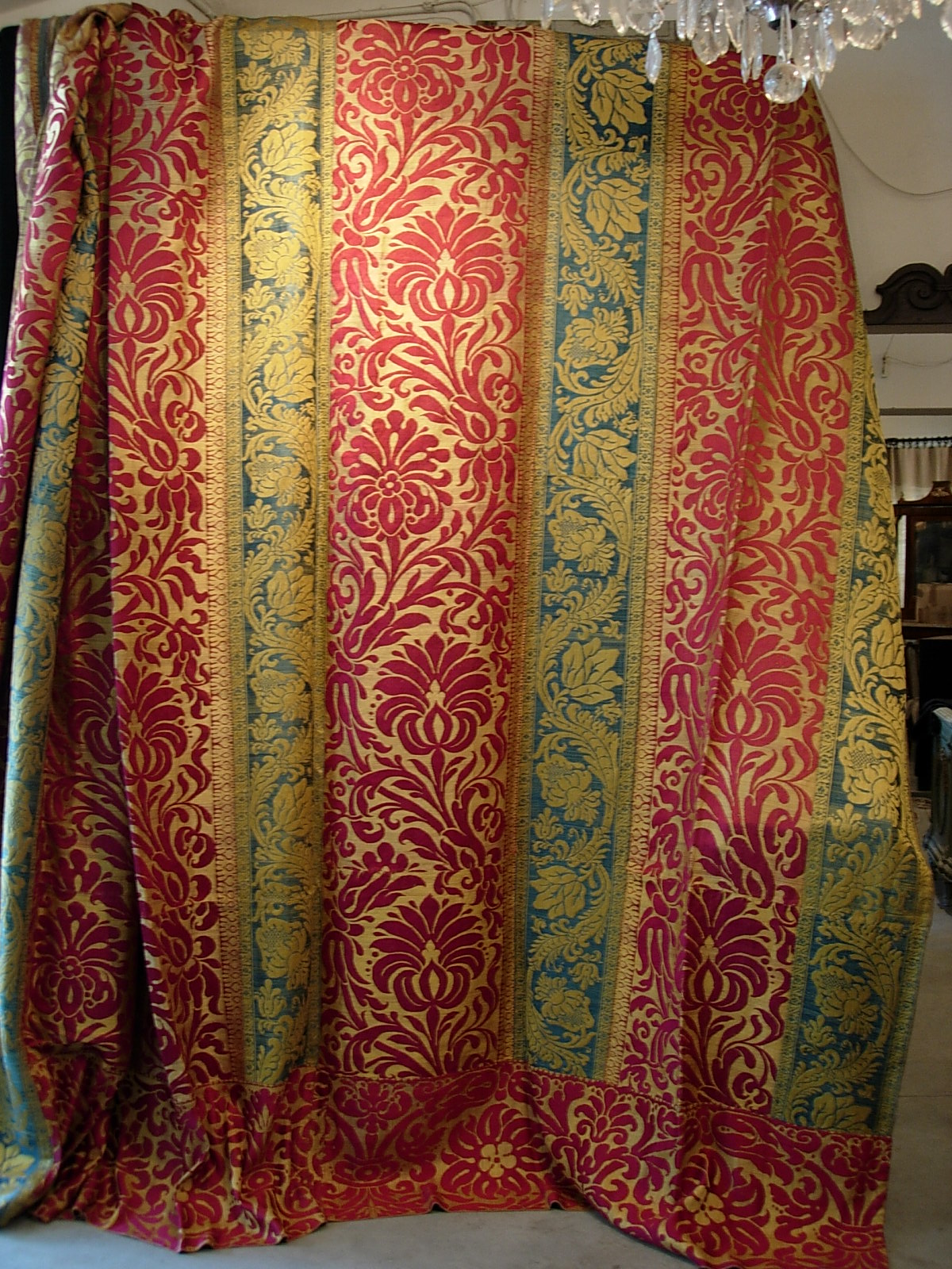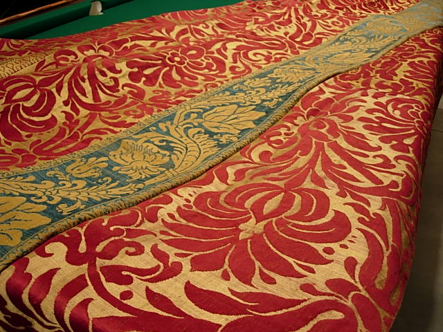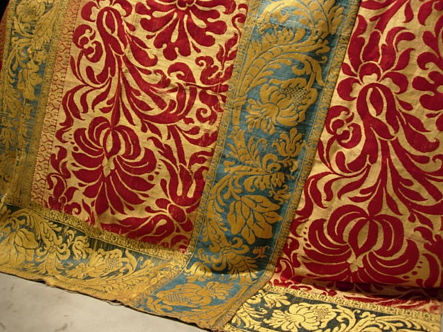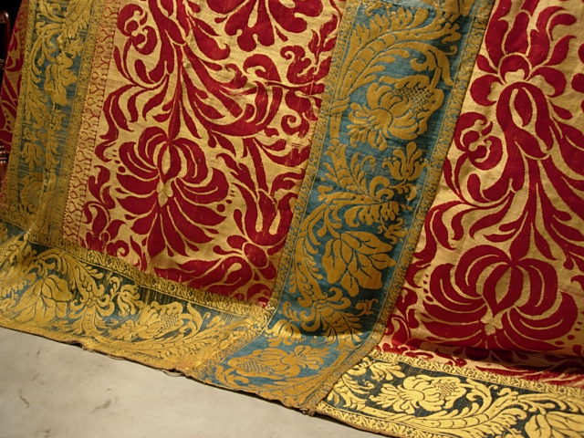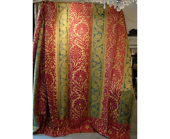 “Tessuti in broccato di seta, Lucca, XVII secolo (4x3 M 12mq)” TESSUTI DA PARATA IN BROCCATO DI SETA 4X3 M 12MQ Provenienza: Manifattura di Lucca (Lucca) Periodo: Seconda metà del XVII