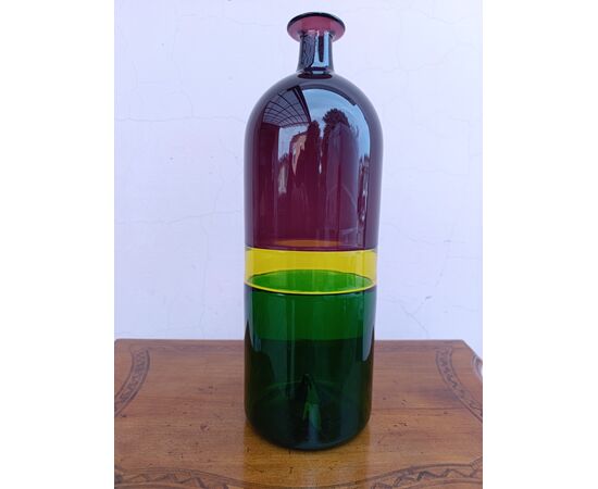 Bottiglia bolle mod 503,00. Bottiglia disegnata da Tapio Wirkkala nel 1966. Vetro soffiato a tecnica ad " incalmo" Firmato e datato. Siamo disponibili a foto o domande.