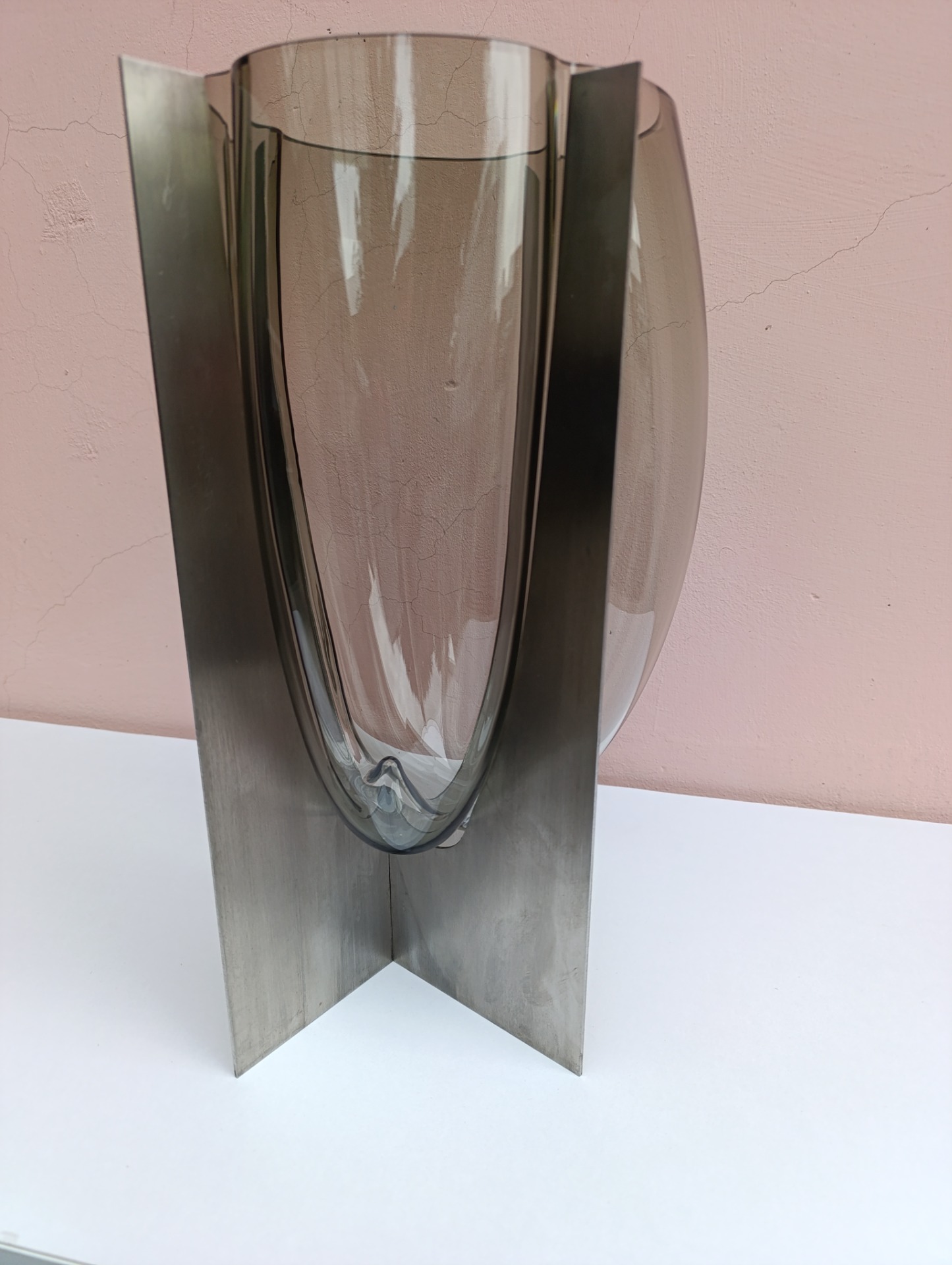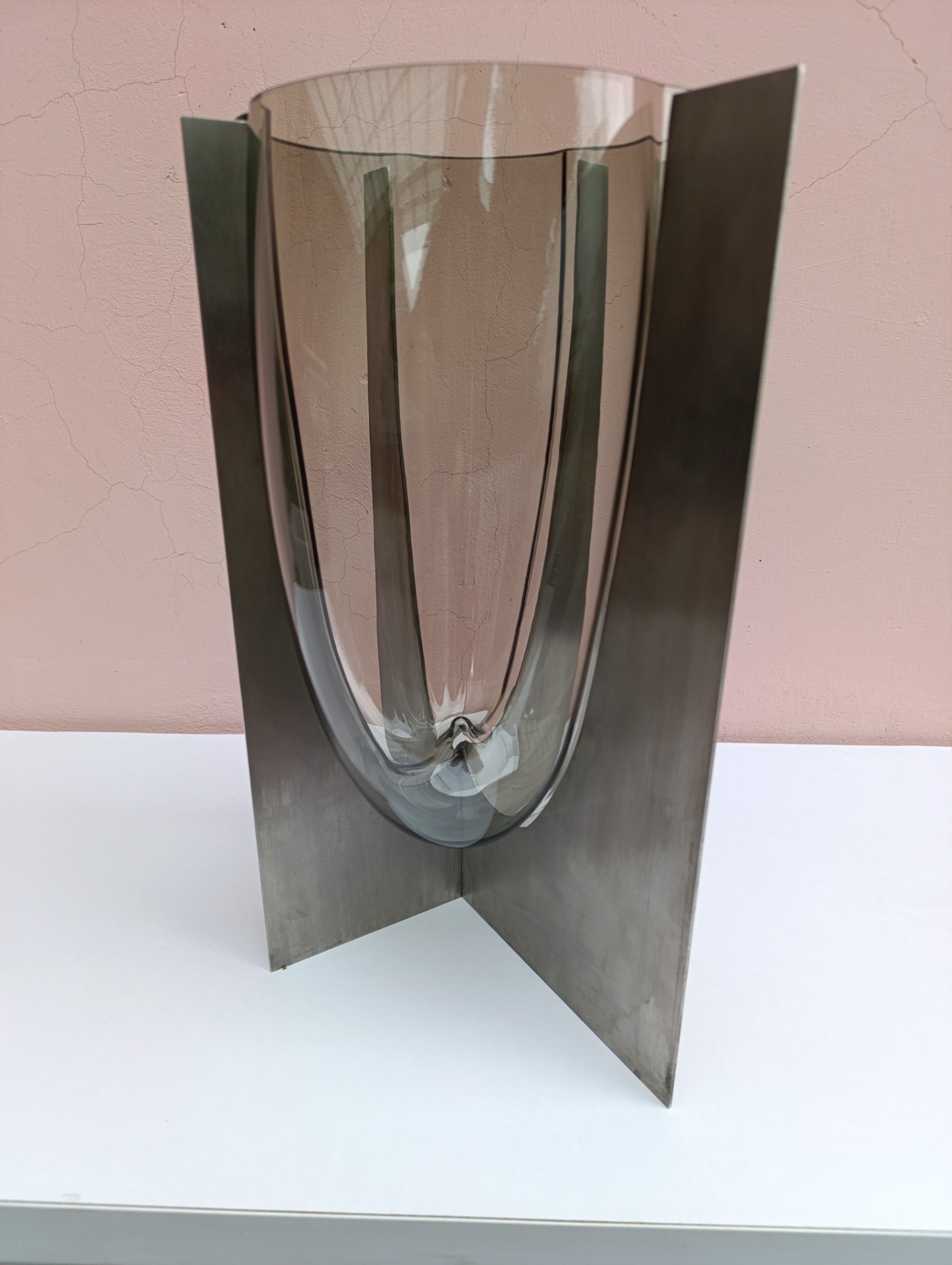 Vado scultura Carlo Nason produttore Mazzega anni 60.Vetro di Murano incastonato in lastre di acciaio.