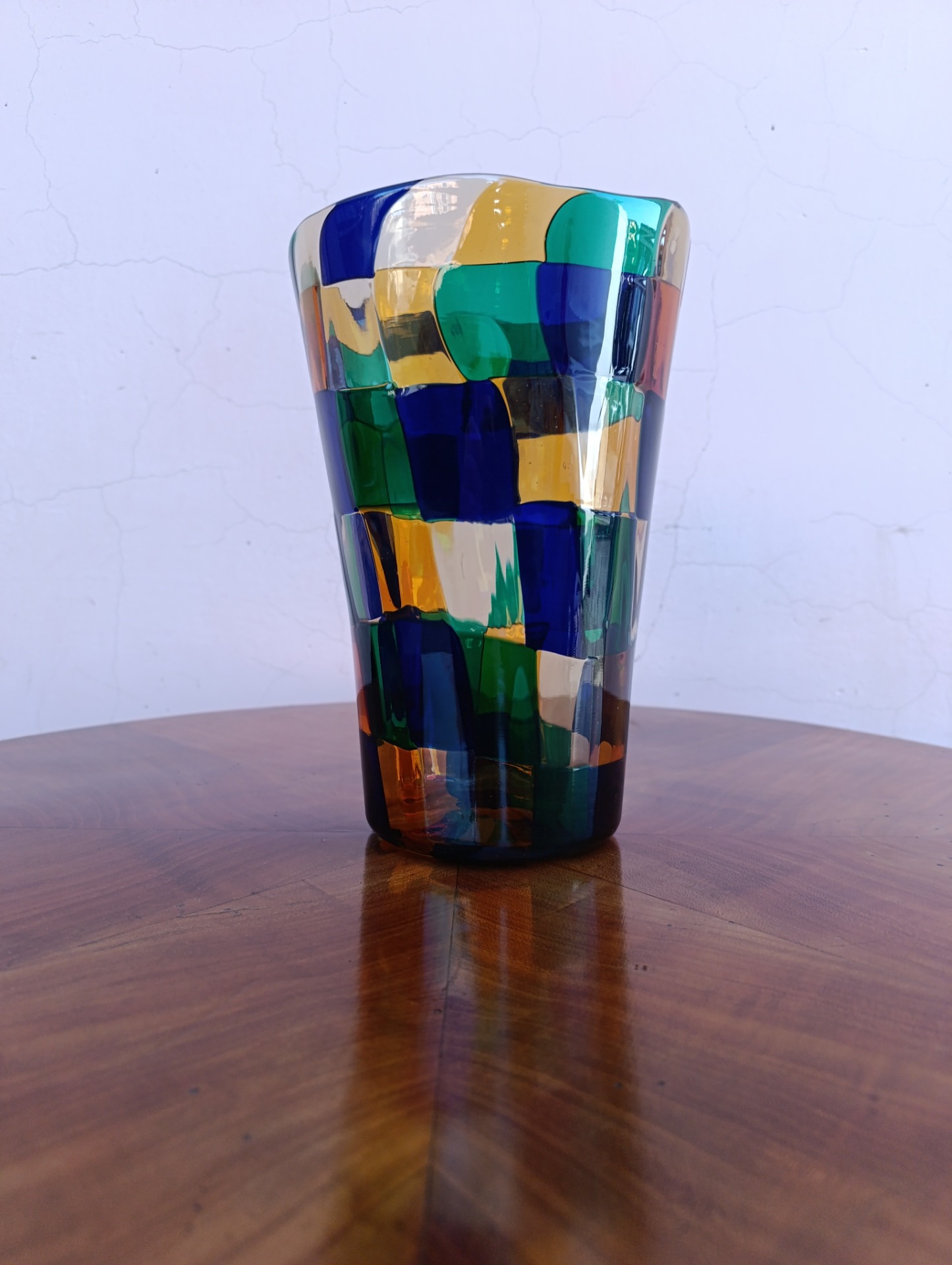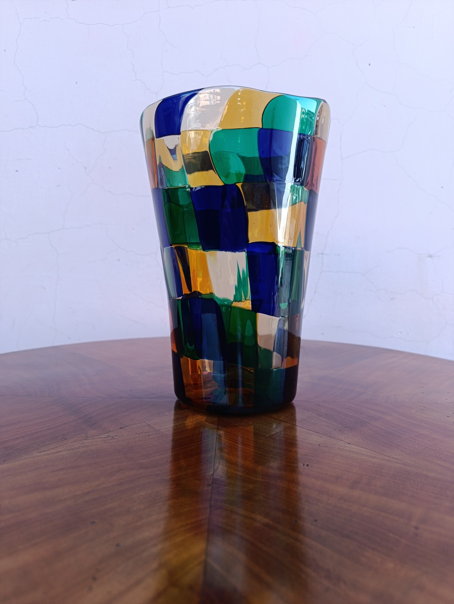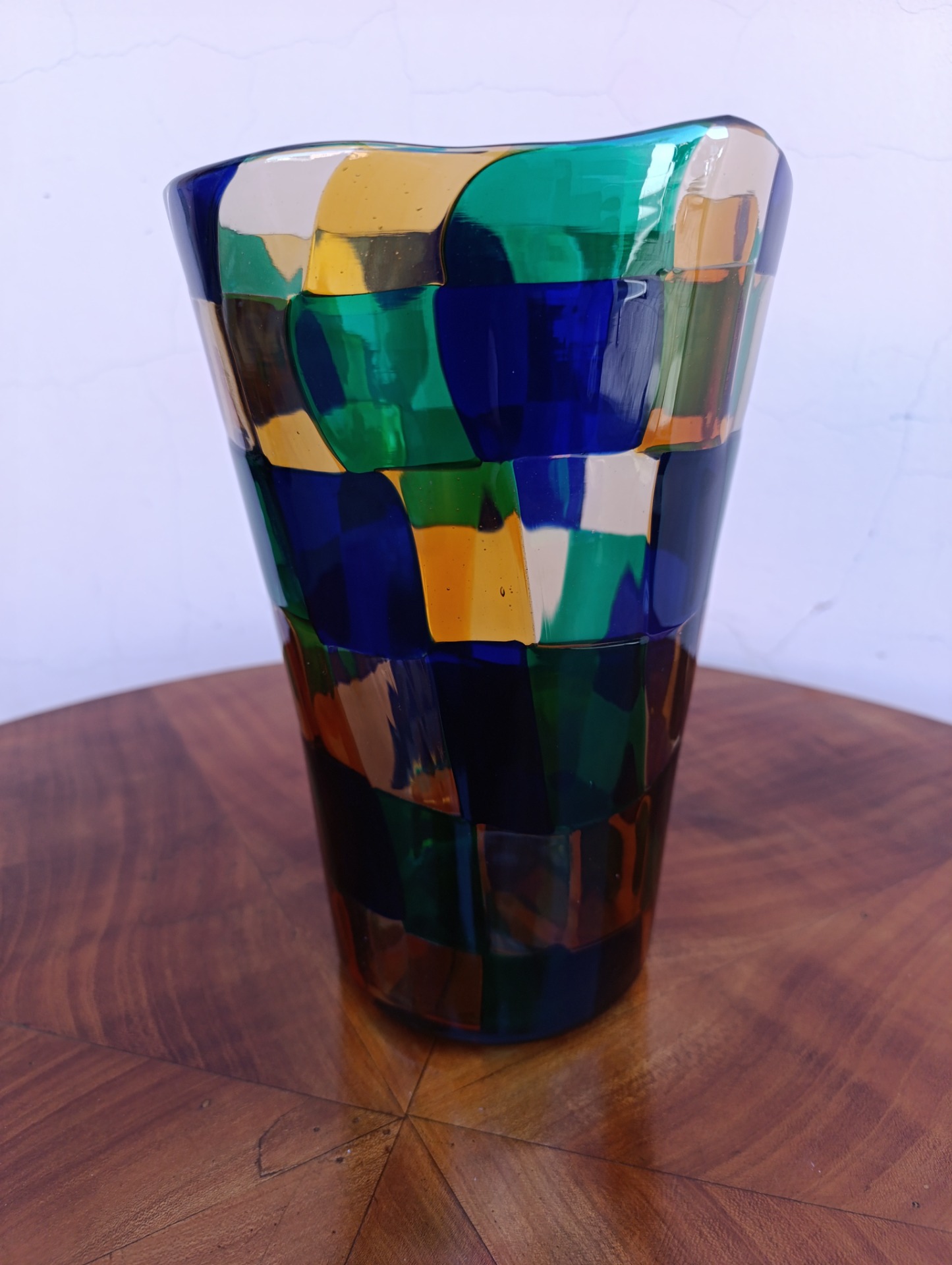 Vado in vetro di murano serie Pezzati.Fulvio Bianconi per Venini. Firmato e datato. Mis: H 25 Largo 17 Siamo a vostra disposizione per foto o domande