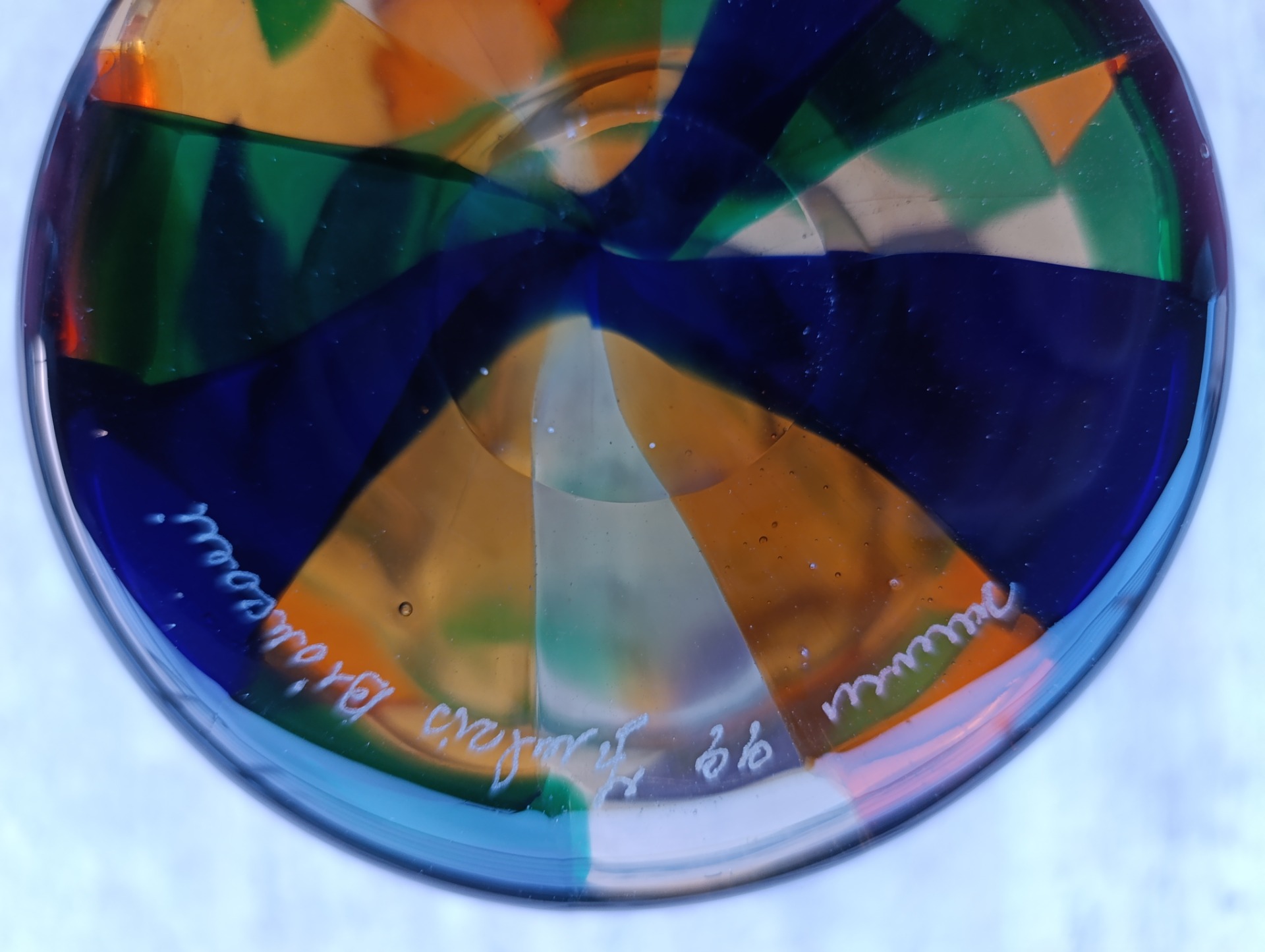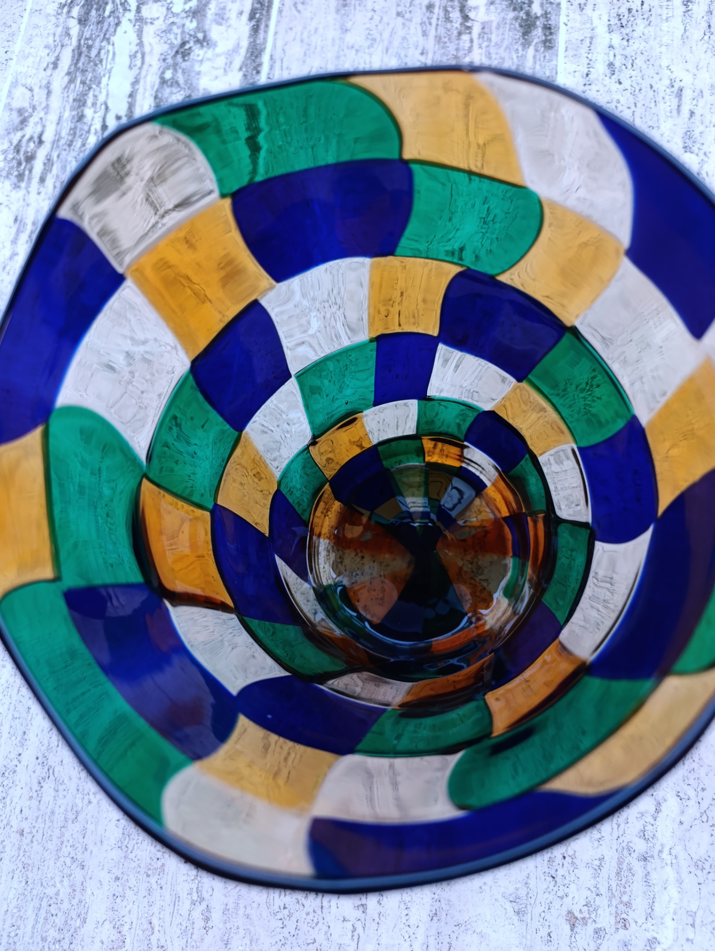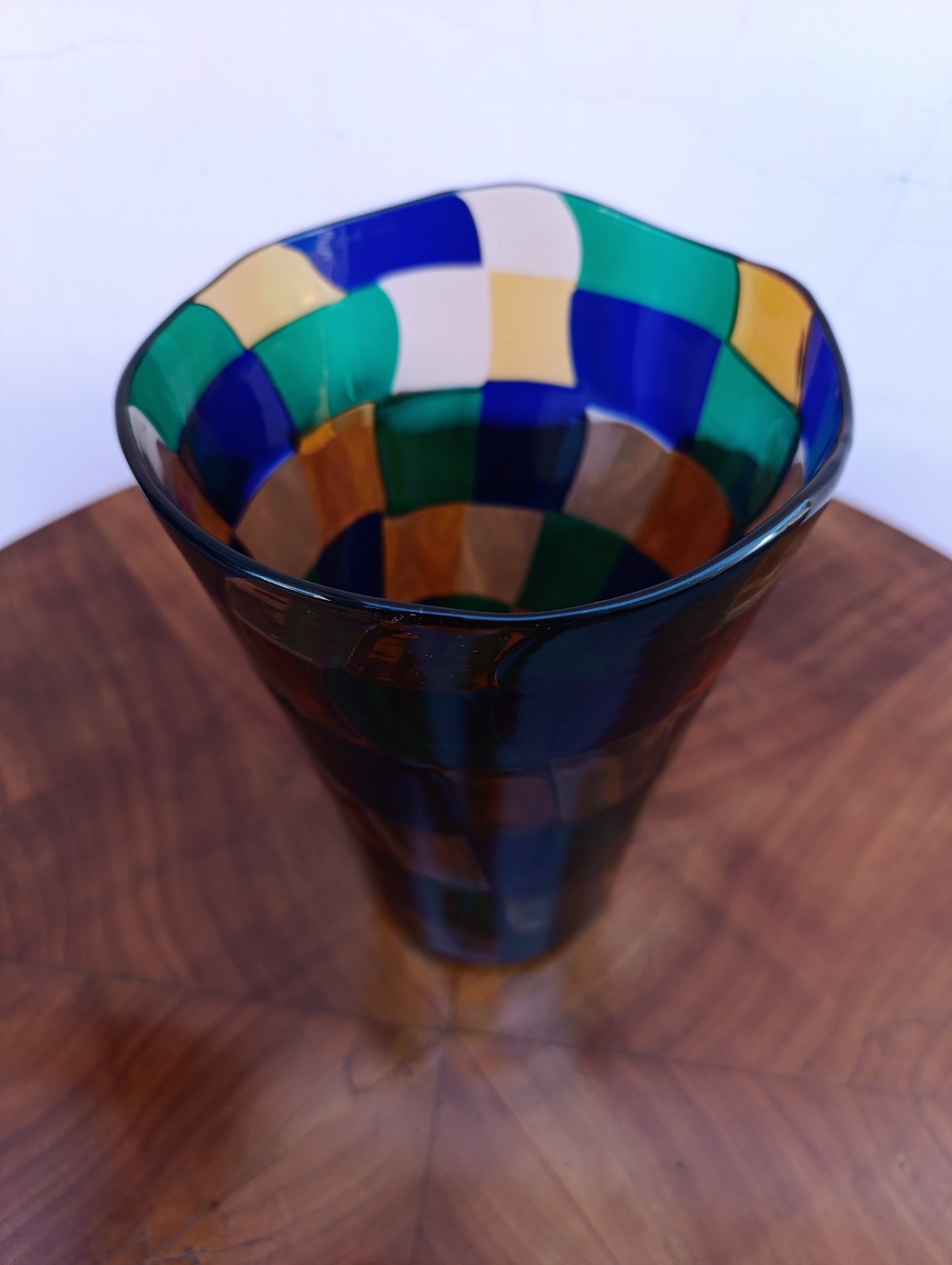 Vado in vetro di murano serie Pezzati.Fulvio Bianconi per Venini. Firmato e datato. Mis: H 25 Largo 17 Siamo a vostra disposizione per foto o domande