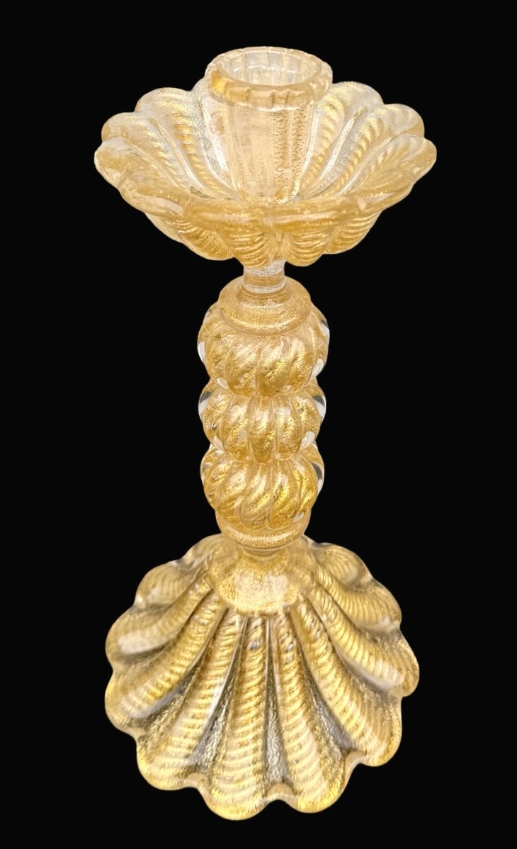 Candeliere in vetro pesante ‘cordonato oro’. Barovier & Toso.Murano.