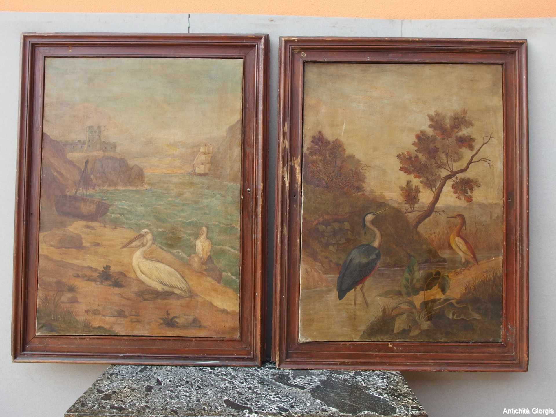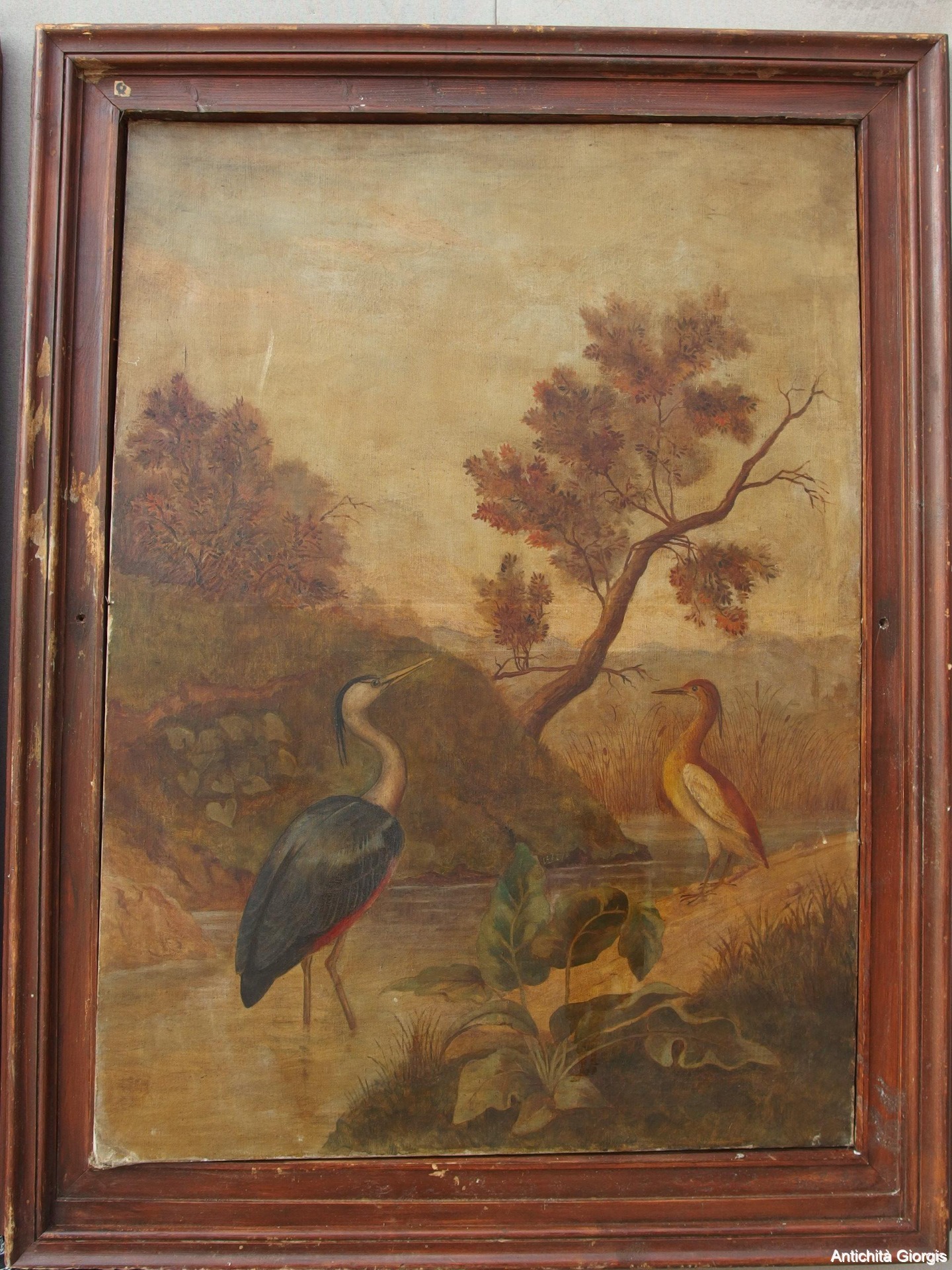 COPIA DI QUADRI SU OLIO SU TELA RAFFIGURANTI UCCELLI EPOCA FINE 800