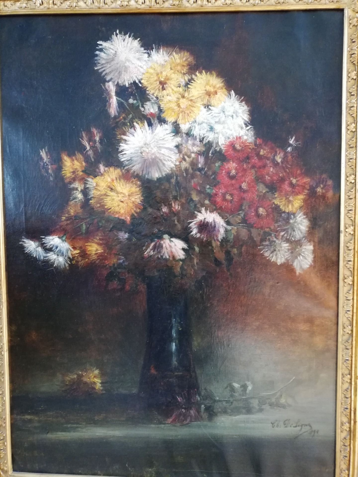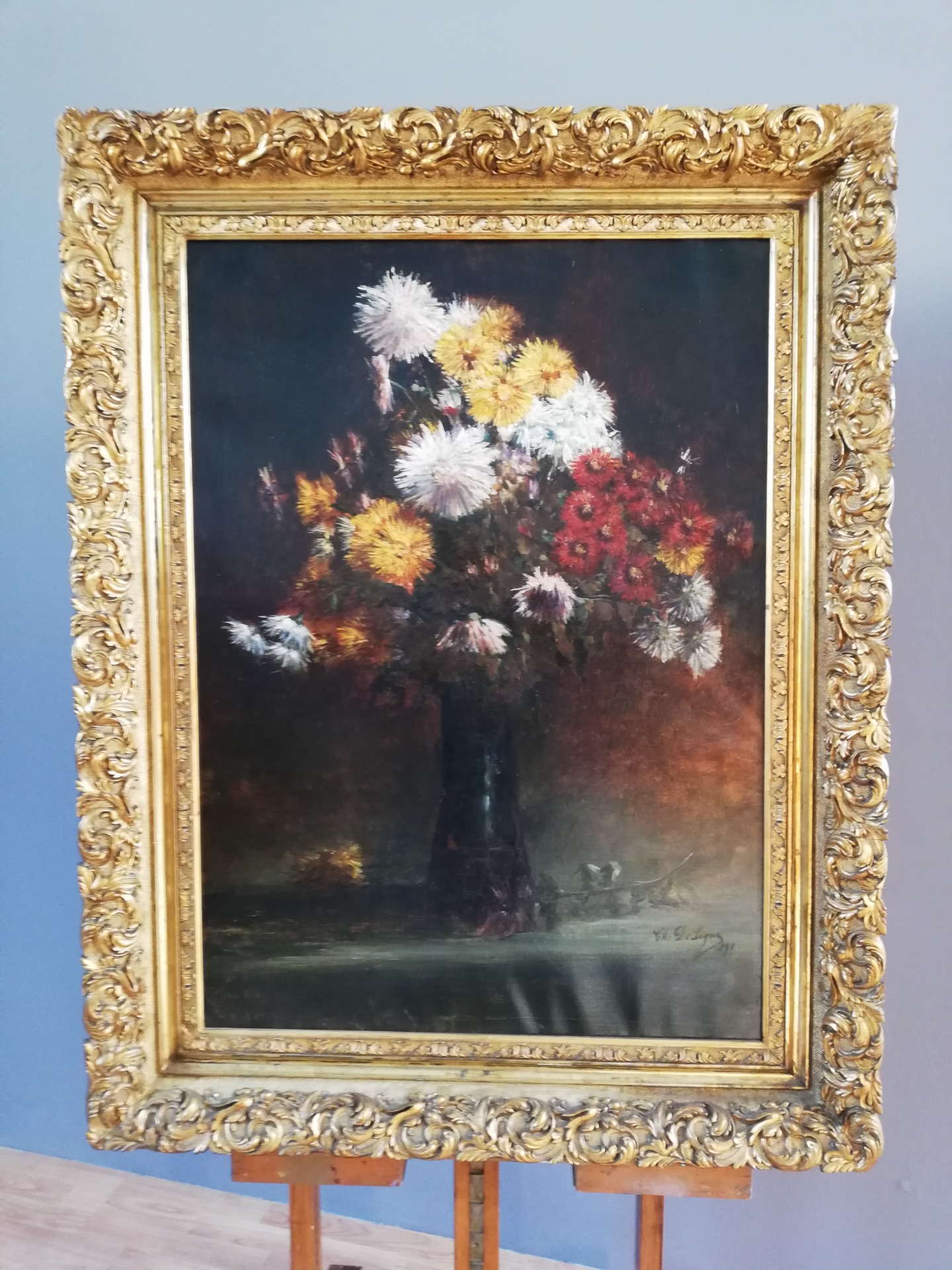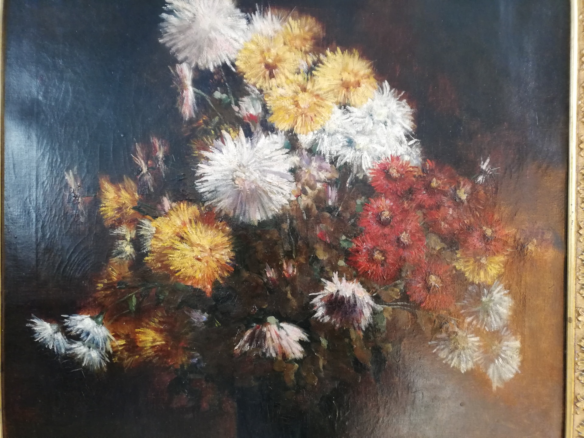 Painting depicting flowers, signed and dated.Contemporary frame, original canvas.