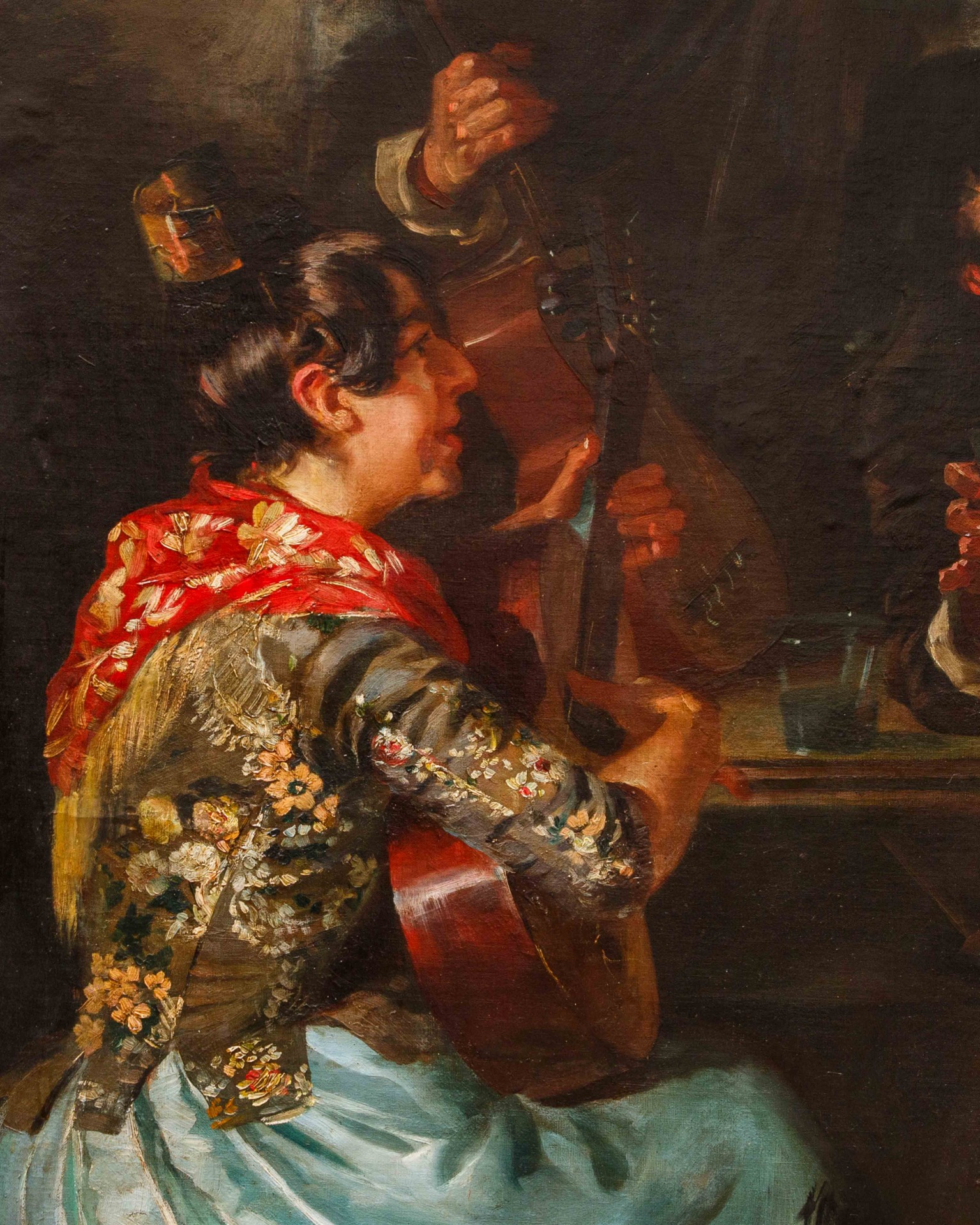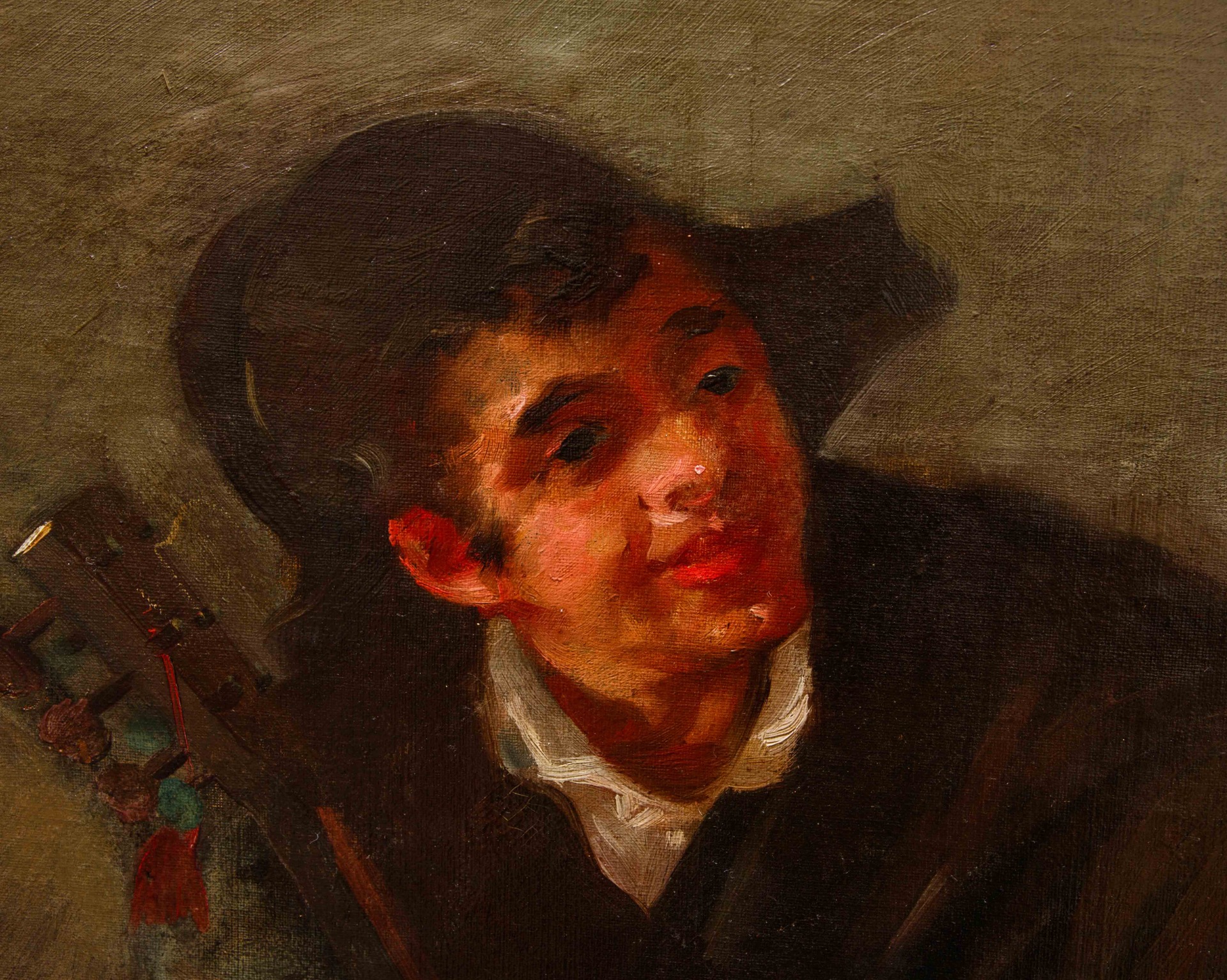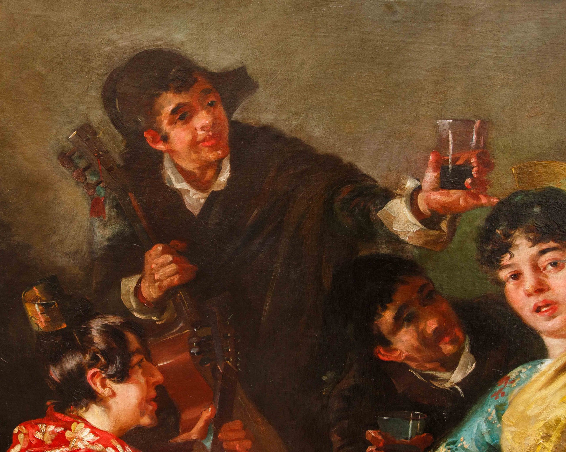 The painting under examination stands as a living testimony of the 19th century in Spain, a century of profound transformations and upheavals both politically and socially, which were reflected in artistic production and, in particular, in painting. The Spanish artists of this period, in fact, found themselves having to reconcile the pictorial traditions of the past with the new influences coming from Europe, giving rise to great experimentation. Specifically, Realism found fertile ground especially in the second half of the century, when people began to dedicate themselves more to the accurate representation of daily reality and its protagonists (peasants, shepherds, drinkers, gamblers, musicians, etc.), always adopting a critical eye and attention to detail.