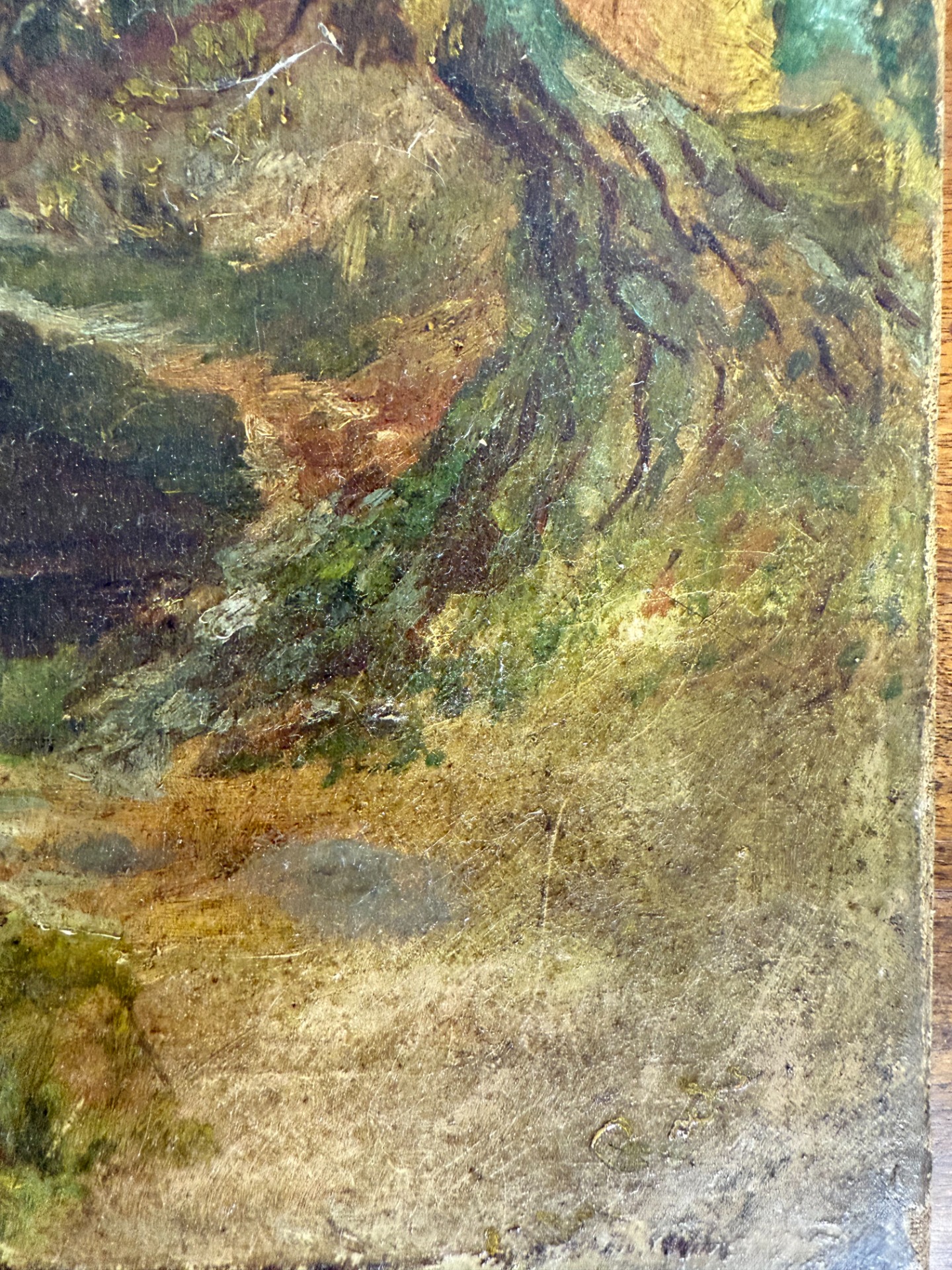 Antico dipinto olio su tela, primi '800, paesaggio, 41x36 cm