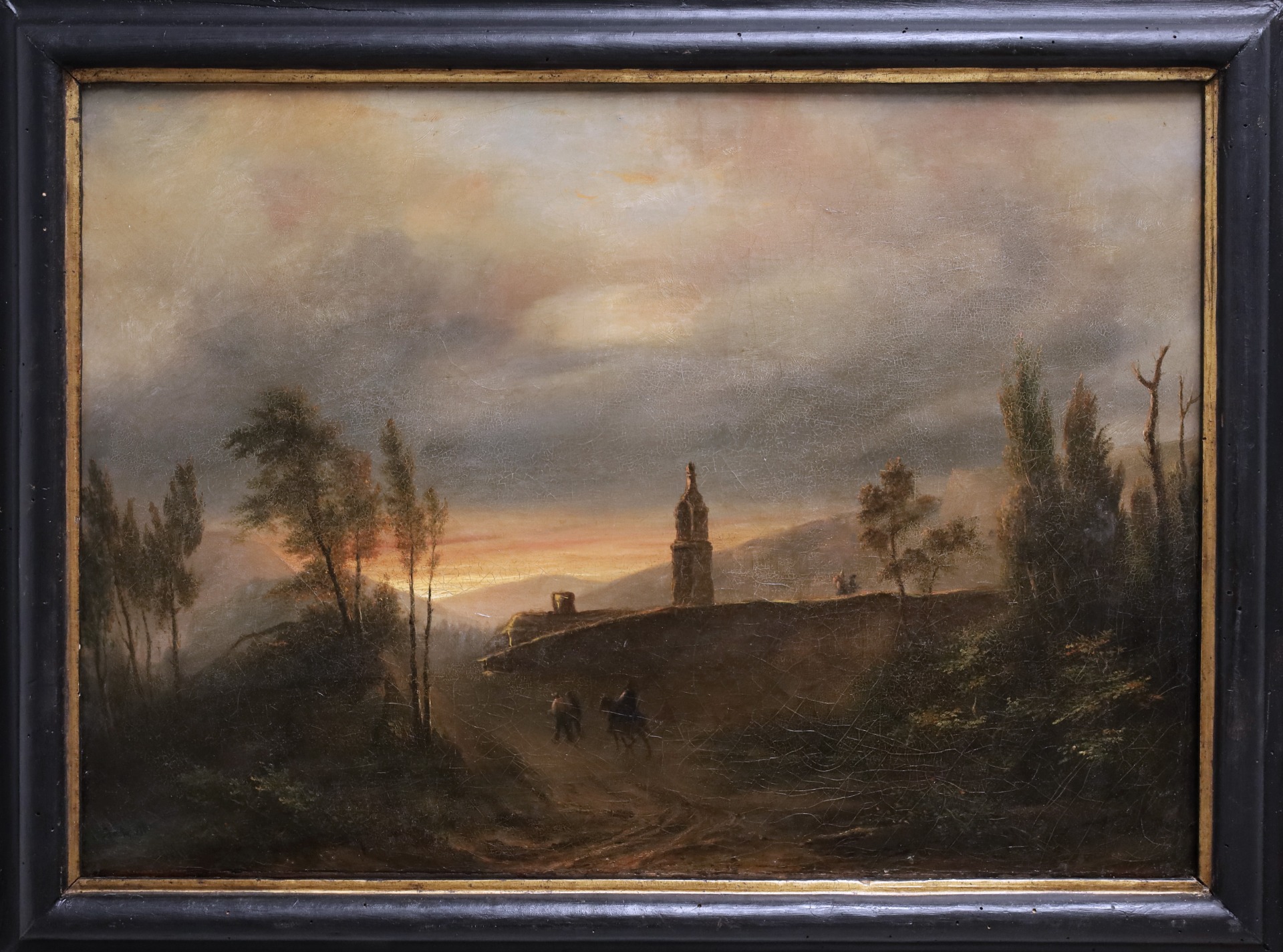 Giuseppe Canella, French landscape at dawn, oil on canvas, cm. 46.5x65