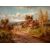 Olio su tela raffigurante paesaggio campestre con fattoria e gregge di pecore con pastore a seguito. Firmato in basso a destre, cornice coeva.