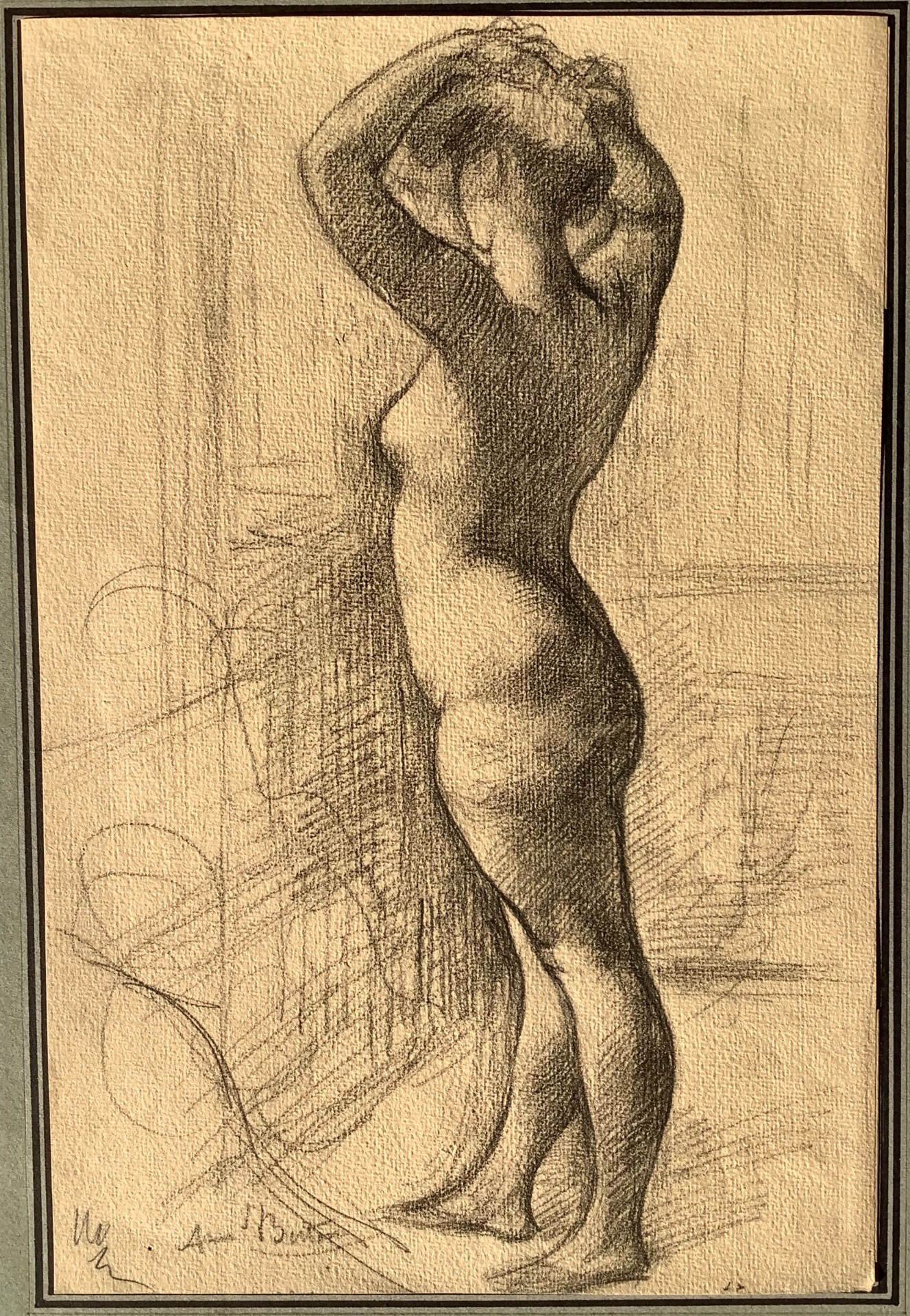 Greasy pencil on drawing paper sheet of cm. 29.5x19.3, signature at the bottom left.